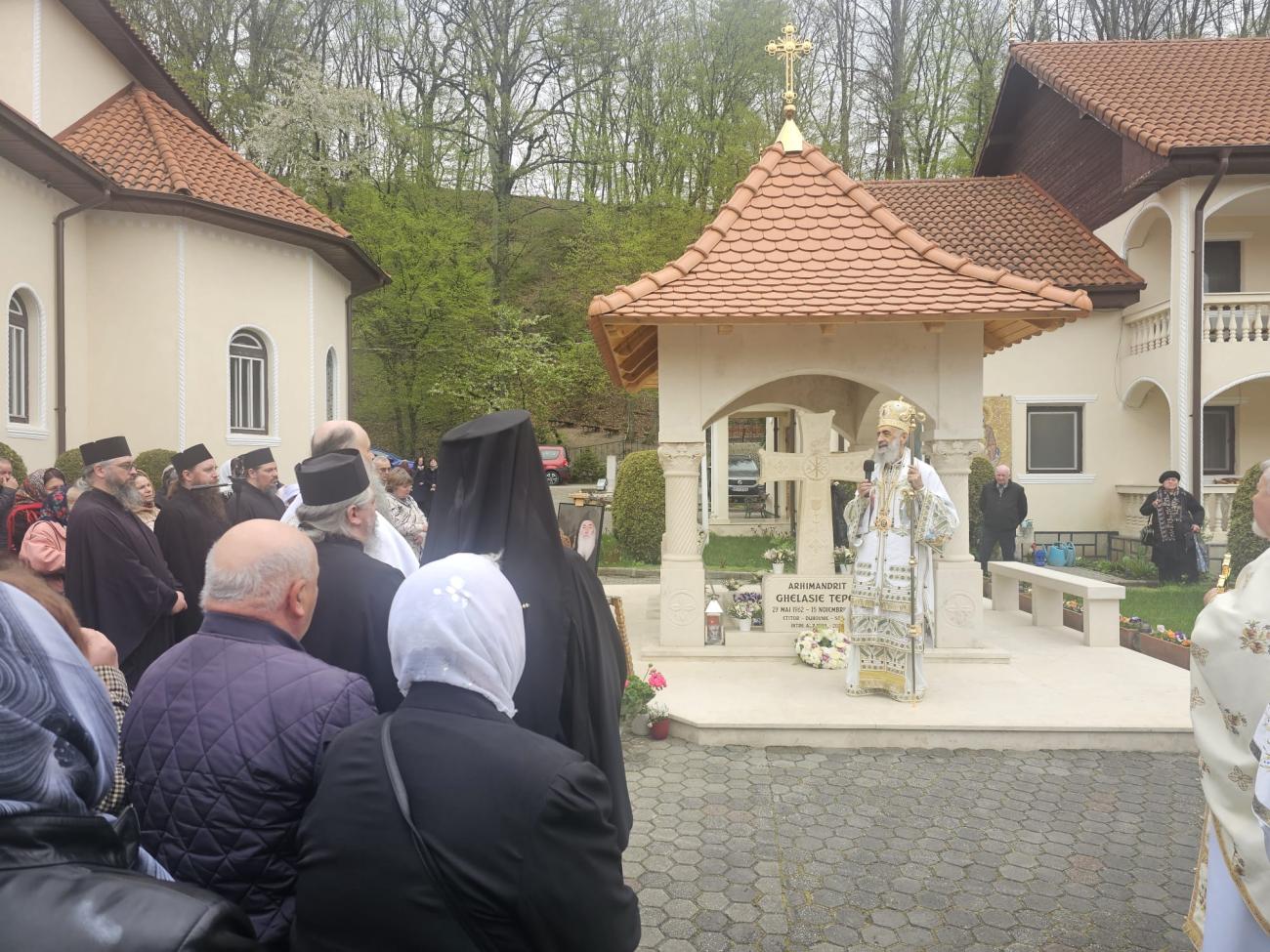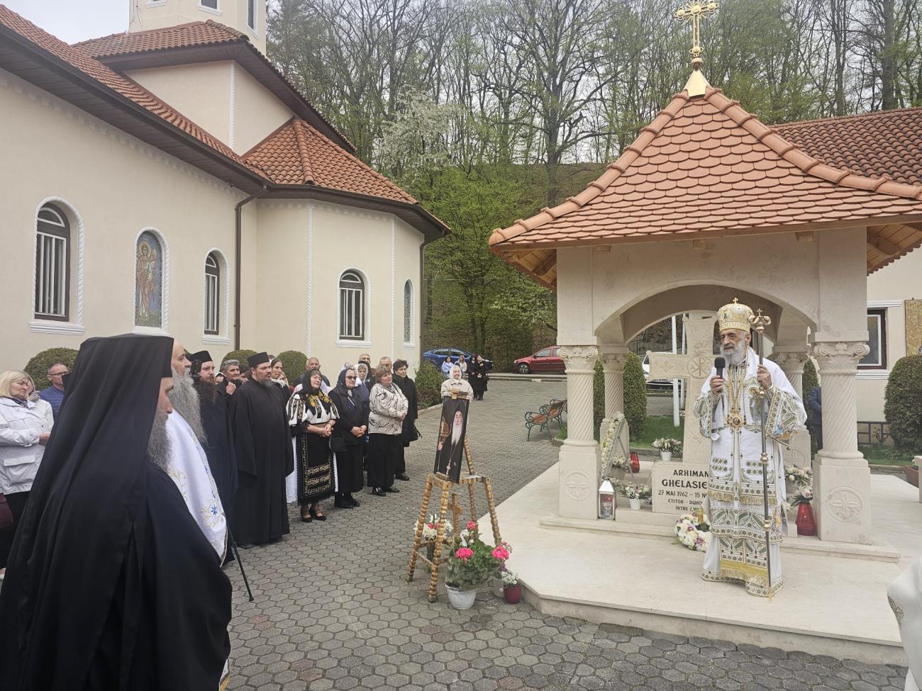 De Praznicul Izvorului Tămăduirii, Înaltpreasfințitul Părinte Arhiepiscop Irineu a poposit la Mănăstirea „Sfântul Mare Mucenic Dimitrie” de la Sighișoara. Întâistătătorul Eparhiei noastre a celebrat Dumnezeiasca Liturghie a Sfântului Ioan Gură de Aur și a rostit cuvântul de învățătură, cu ocazia celui de-al doilea hram al acestei vetre monahale. După Sfânta Liturghie, soborul sfințiților slujitori s-a îndreptat spre mormântul arhimandritului Ghelasie Țepeș, trecut în veșnicie la data de 15 noiembrie 2020. Aici, Părintele Arhiepiscop Irineu a rostit un cuvânt duhovnicesc în care a reliefat virtuțile celui dintâi stareț al așezământului monahal. În prezent, obștea Mănăstirii de la Sighișoara se află sub oblăduirea părintelui arhimandrit Emanuel Pleș.