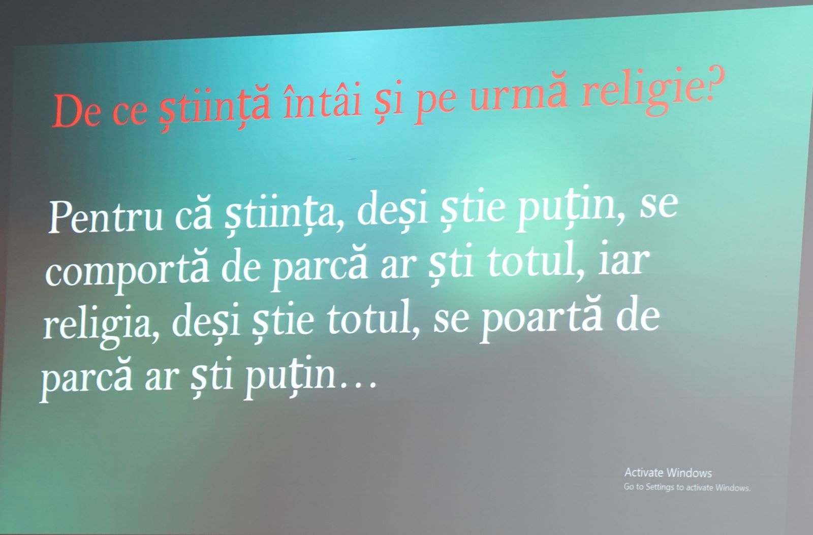 În cadrul amplului discurs rostit cu acest prilej, părintele Crin-Triandafil a exemplificat o serie de paralele și similitudini între domeniul variat al Științei și universul Credinței. Utilizând o prezentare power-point spre a susține numeroasele argumente expuse, invitatul întâlnirii a dorit să accentueze complementaritatea dintre Credință și Știință, respectiv dintre ceea ce numim creaționism și evoluționism. În partea a doua a întâlnirii a avut loc o sesiune de întrebări, moderată de către președintele ASCOR Alba Iulia, Petru Mircea. Pe această cale, părintele Crin-Triandafil, într-o manieră cu totul aparte – din dubla postură de păstor sufletesc și cunoscător al „tainelor” mediului înconjurător –, a răspuns tuturor curiozităților venite din partea celor prezenți, îngemănând informațiile științifice cu învățăturile Sfintei Scripturi.