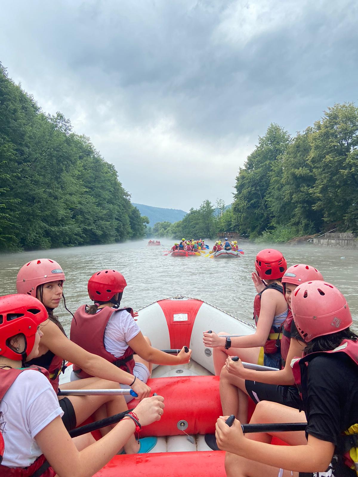 Cea de-a cincea zi a constituit pentru mulți o experiență nouă, plină de adrenalină, dar ne-a oferit tuturor cea mai bună lecție de cooperare și ascultare. Însoțiți de o echipă de profesioniști, am parcurs în bărci pneumatice cursul Râului Crișul Repede de la Peștera Unguru Mare până la Vadu Crișului, cu mai multe opriri. Prima dintre acestea a fost în Defileul Crișului Repede, unde vreme de câteva minute am putut admira pereții înalți de stâncă prin mijlocul cărora râul și-a croit drum. Cel mai grozav moment a fost popasul la Cascada Vadu Crișului. Cei mai mulți dintre tinerii participanți au sărit în bazinul săpat în calcar de apa rece și cristalină a cascadei, între căderea ei de la înălțimea de 9 metri și vărsarea în Râul Crișul Repede. Pe a doua parte a traseului am fost puși la încercare de o furtună, care ne-a înghețat trupurile, dar ne-a călit puterile sufletești. Am înțeles că, ascultând de cel cu experiență și punând padelă lângă padelă, în cazul nostru, reușim să trecem peste situațiile grele și neprevăzute.