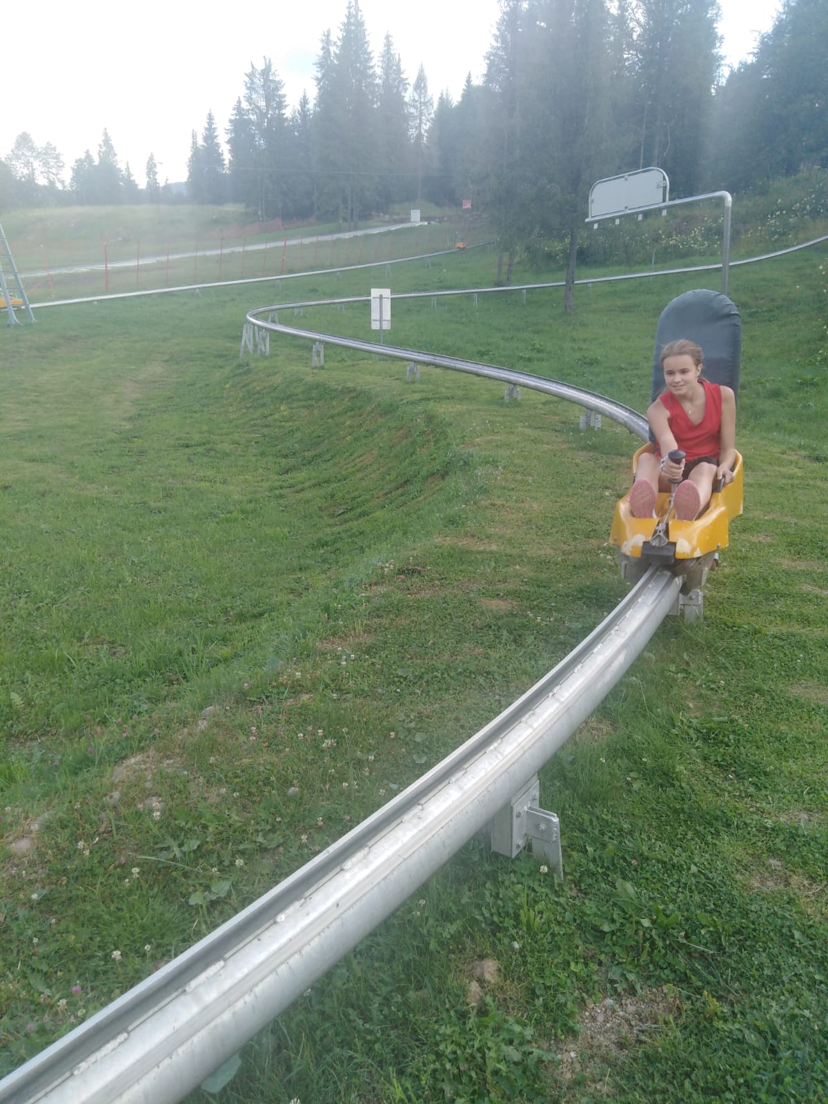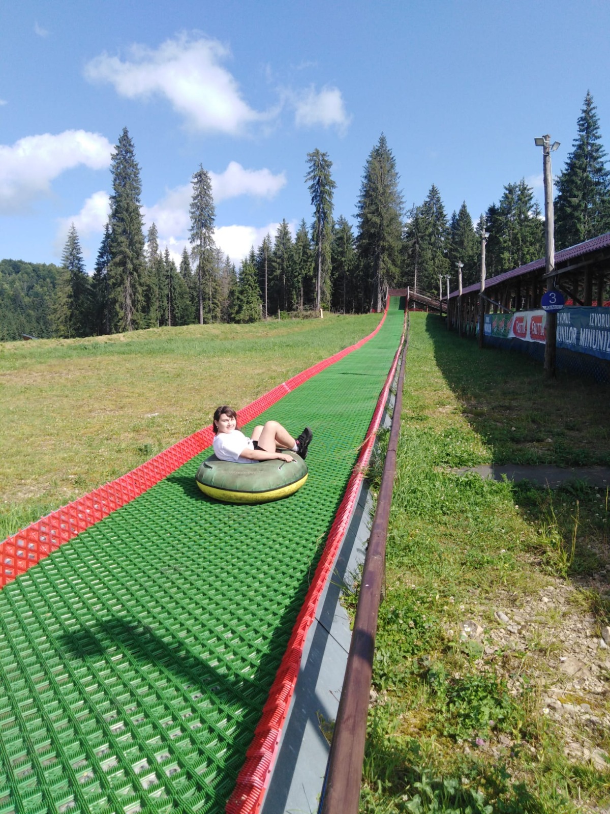 A doua zi de tabără ne-a oferit posibilitatea de a ne bucura de activitățile din parcul de distracții din stațiunea Stâna de Vale. După parcurgerea traseelor din parcul de aventură, cu toții am experimentat tubing-ul pe pârtia cu trambulină și coborârea cu bobul pe pista special amenajată. La întoarcerea spre cazare am putut admira cascadele Vălul Miresei (Bihor) și Săritoarea Ieduțului. Ziua a continuat cu sesiuni de jocuri de dezvoltare personală, de inteligență și perspicacitate.