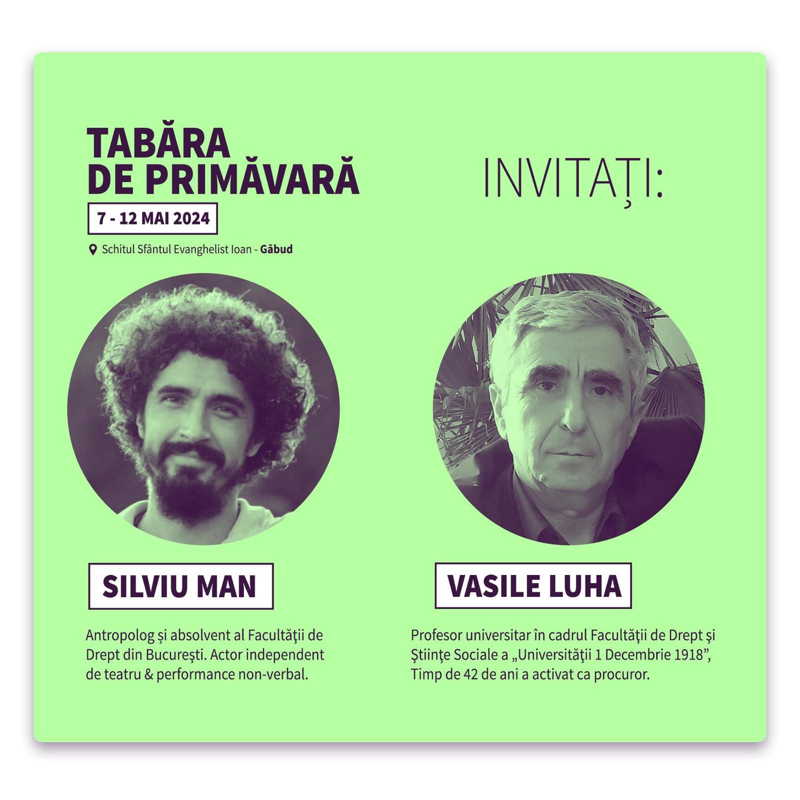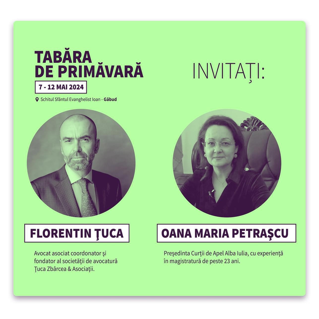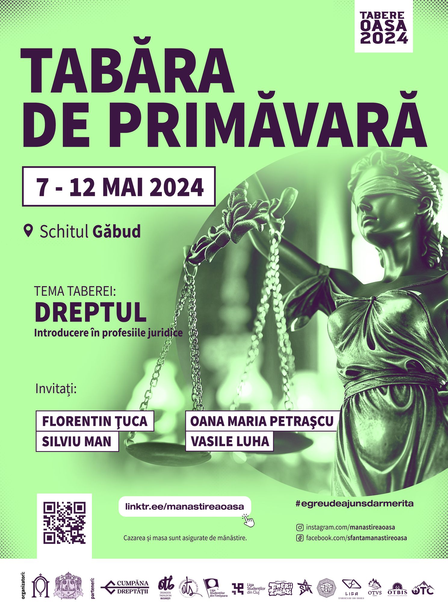 În perioada 7-12 mai 2024, în Sâptămâna Luminată, Schitul „Sfântul Ioan Evanghelistul” de la Găbud va găzdui o nouă ediție a Taberei de primăvară. În acest an, tematica manifestării este Dreptul, iar invitații care vor susține conferințe sunt profesioniști reprezentanți ai principalelor profesii juridice: Oana Petrașcu, Dana Gârbovan (procurori), Florentin Țuca (avocat), Vasile Luha (procuror), Cornelia Șuș (notar) și Constantin Nuțescu (executor judecătoresc). Alături de aceștia, va fi prezent și domnul Silviu Man, antropolog și absolvent al Facultății de Drept.