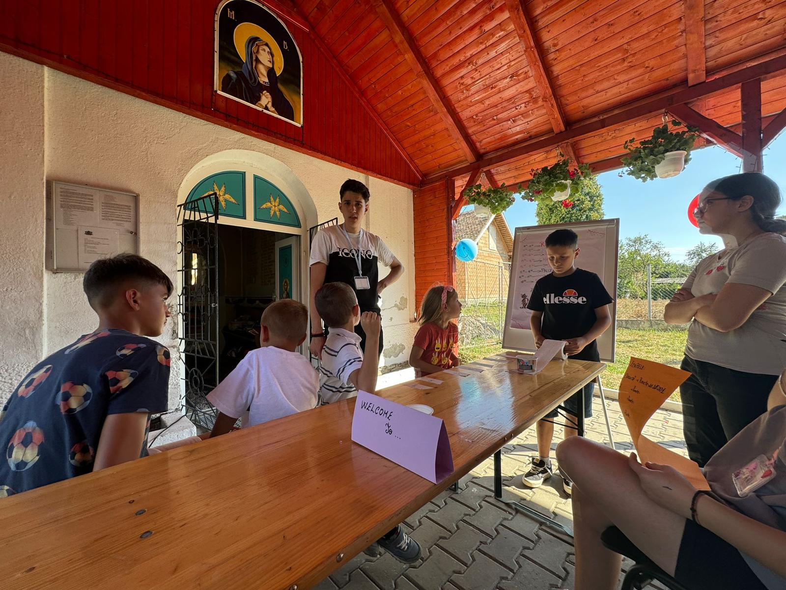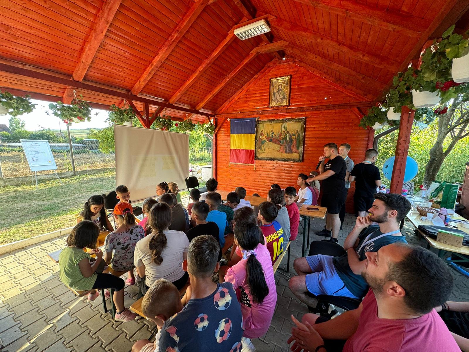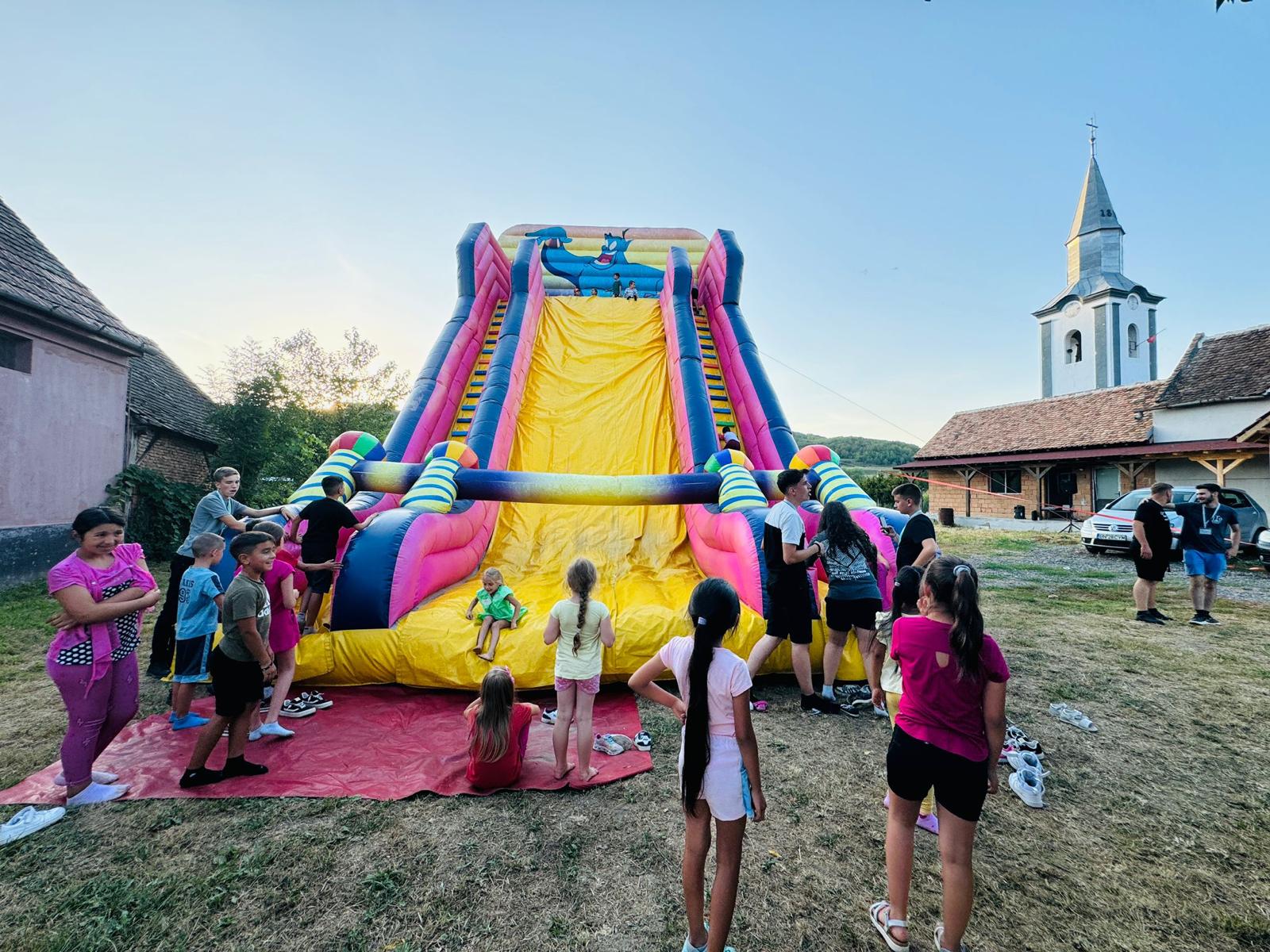 În a doua parte a zilei, participanții s-au bucurat de cântece, dar și de surpriza mult așteptată a taberei: imensul tobogan gonflabil. În urma tuturor activităților desfășurate, am concluzionat faptul că tabăra organizată în parohia noastră demonstrează cu tărie că avem șansa unei societăți sănătoase în care valorile religios-morale și distracția se pot împleti frumos și că tinerii încă știu să se roage și să păstreaze neîntinată credința noastră strămoșească pe care o cultivă încă din fragedă pruncie. La final, aducem mulțumiri familiei Bogdan și Oana Tomuță pentru masa oferită celor 45 de persoane prezente, precum și domnului Radu Pintea pentru sonorizare, pentru distracția cu modelarea baloanelor și pentru implicarea dovedită pe întreg parcursul zilei.