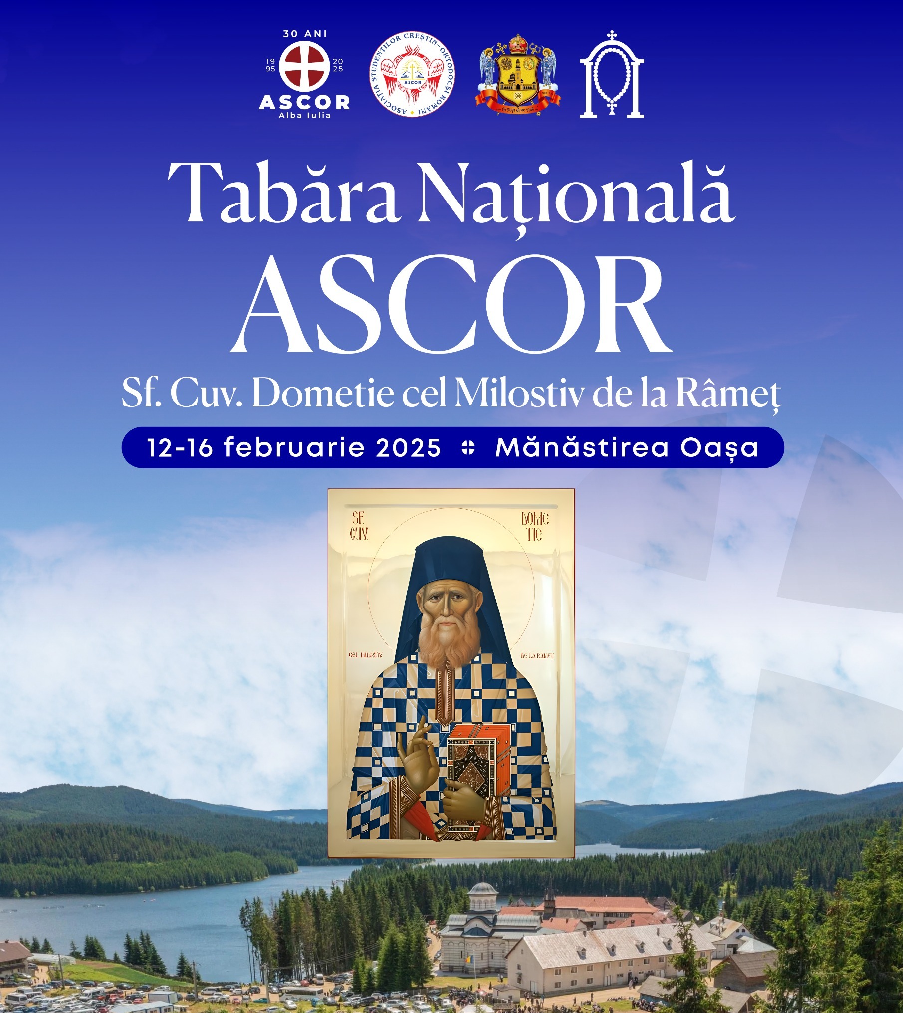 În perioada 12-16 februarie 2025, la Mănăstirea „Sfântul Mare Mucenic și Tămăduitor Pantelimon” de la Oașa (județul Alba), va avea loc Tabăra Națională ASCOR „Sfântul Cuvios Dometie cel Milostiv de la Râmeț”. Evenimentul marchează împlinirea a 30 de ani de la înființarea Asociației Studenților Creștin-Ortodocși Români – Filiala Alba Iulia, fiind organizat la inițiativa și prin implicarea directă a organizației studențești din Cetatea Marii Uniri. Manifestarea va evoca personalitatea Sfântului Cuvios Dometie cel Milostiv de la Râmeț și va reuni 200 de tineri din toate filialele ASCOR. În cadrul aceluiași eveniment va fi organizat Consiliul Național ASCOR, prilej cu care vor fi dezbătute planurile de viitor ale asociației.