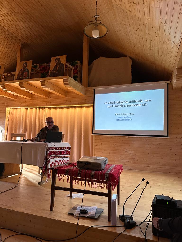 Prof. univ. ing. dr. Ștefan Matu-Trăușan, profesor la Universitatea Politehnică din București, Departamentul Computer Science, cercetător științific I la Institutul de Cercetări în Inteligență Artificială al Academiei Române, implicat în Centrul de dialog teologie-știință-filosofie din cadrul Universității din București, a vorbit tinerilor despre un subiect de actualitate: „Ce este inteligența artificială? Care sunt limitele și pericolele ei?”.
