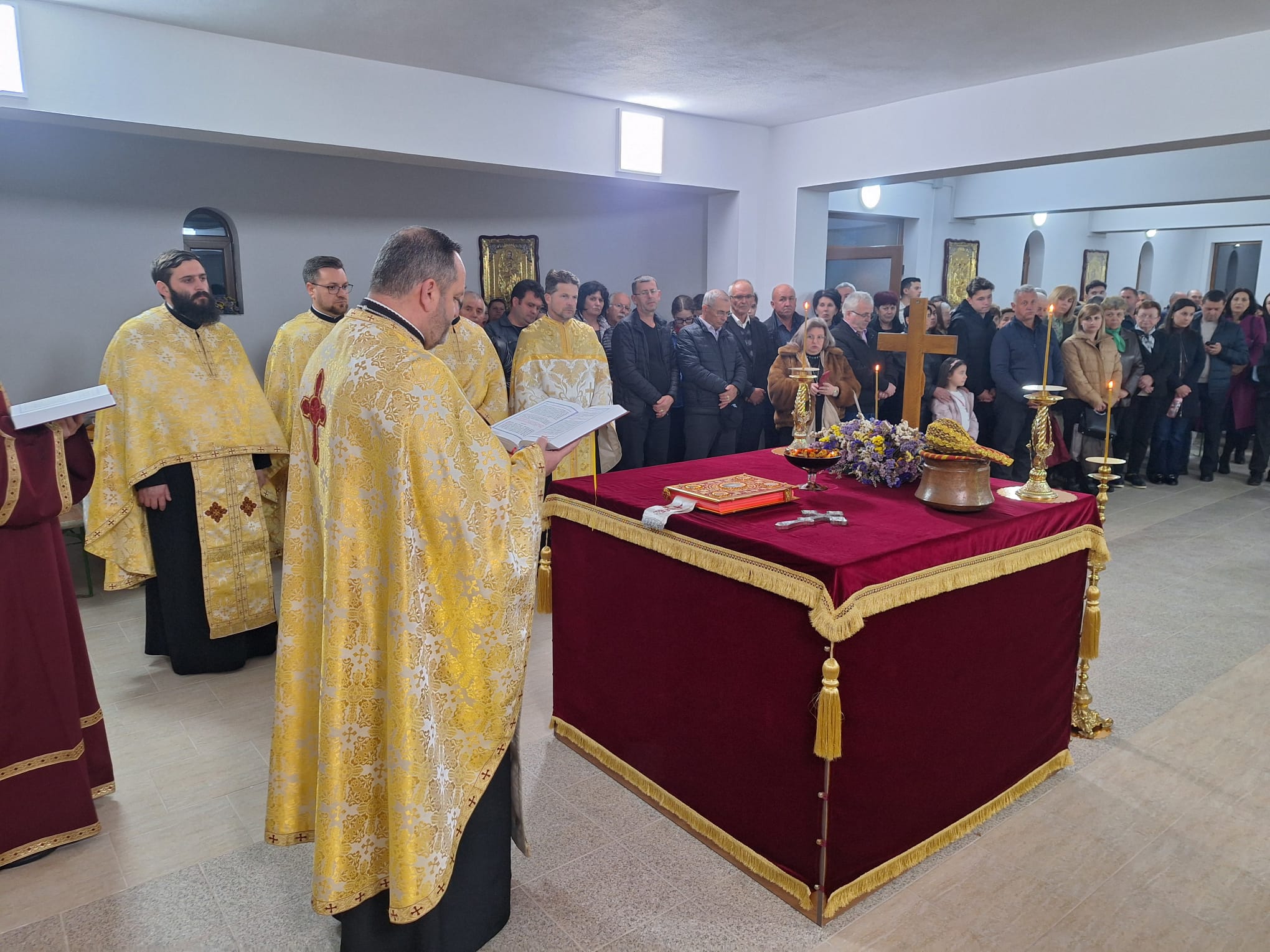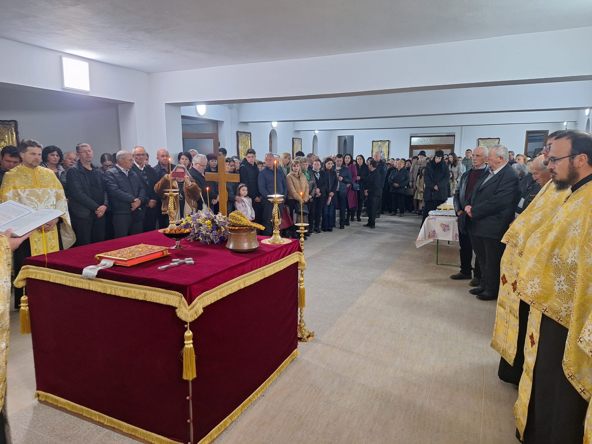 După încheierea Tainei Sfântului Maslu, a avut loc slujba de binecuvântare a demisolului bisericii parohiale. Acest spațiu a fost amenajat și înfrumusețat în decursul ultimului an, prin jertfa enoriașilor și cu sprijinul autorităților locale. Acest spațiu va deservi drept capelă mortuară, acoperind astfel necesitățile stringente din sânul comunității. La final, părintele protopop Ioan Bogdan, păstor al parohiei Livezile în perioada 2004-2017, a rostit un cuvânt duhovnicesc în care a subliniat importanța Sfintei Cruci în viața creștinilor. Frumusețea evenimentului a fost sporită de prestația muzical-artistică a Grupului vocal „Ascendis” din Aiud, coordonat de către doamna lect. univ. dr. Roxana-Nadina Bostan, care a interpretat un buchet de cântece religioase. La final, în calitate de gazdă, am adresat cuvenitele mulțumiri celor care ne-au fost alături în această zi, precum și tuturor binefăcătorilor.