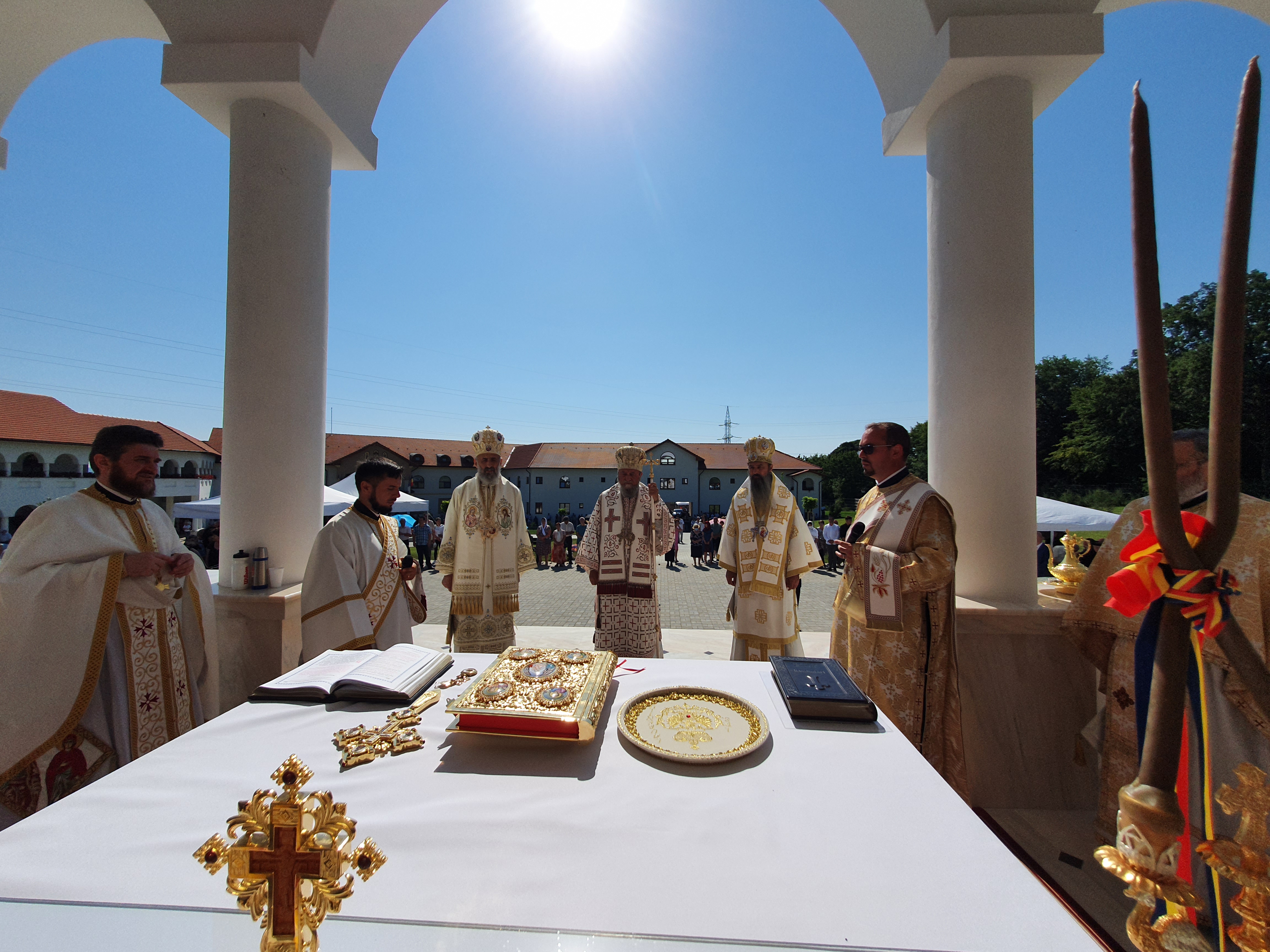 În continuare, soborul de arhierei, înconjurat de numeroși preoți și diaconi, a oficiat Dumnezeiasca Liturghie a Sfântului Ioan Gură de Aur în pridvorul deschis al bisericii „Sfântul Mare Mucenic Mina”. După citirea Sfintei Evanghelii, Preasfințitul Părinte Paisie Lugojanul a rostit o omilie în care a tâlcuit valențele dogmatico-teologice și spiritual-morale ale pericopei evanghelice citite în cadrul Dumnezeieștii Liturghii, evidențiind credința și smerenia de care a dat dovadă sutașul roman în convorbirea cu Mântuitorul Hristos. Răspunsurile liturgice au fost oferite de către Corala „Reîntregirea”, formată din elevi seminariști, studenți teologi, preoți și diaconi, condusă de către părintele prof. dr. Nicolae Topîrcean.