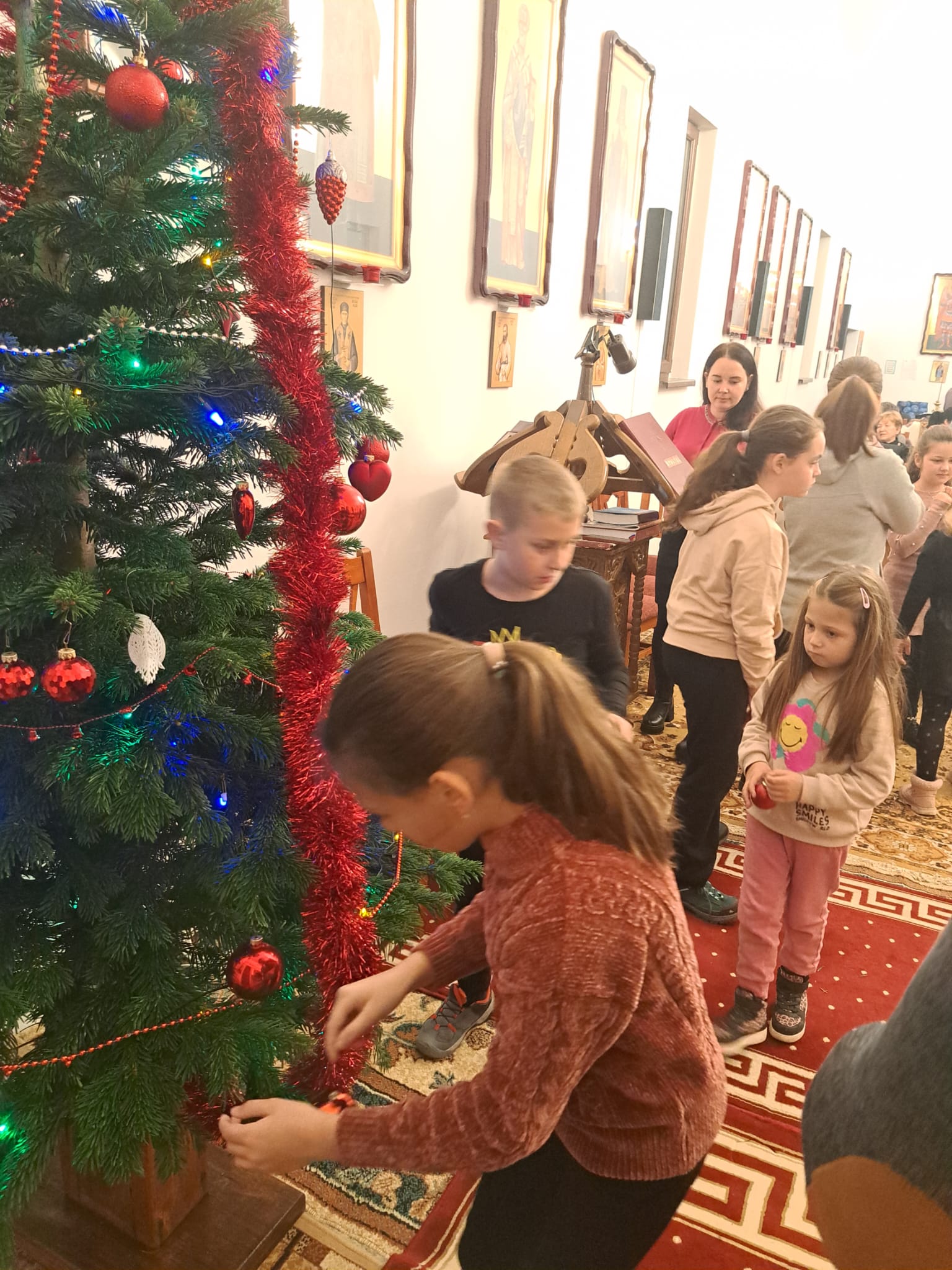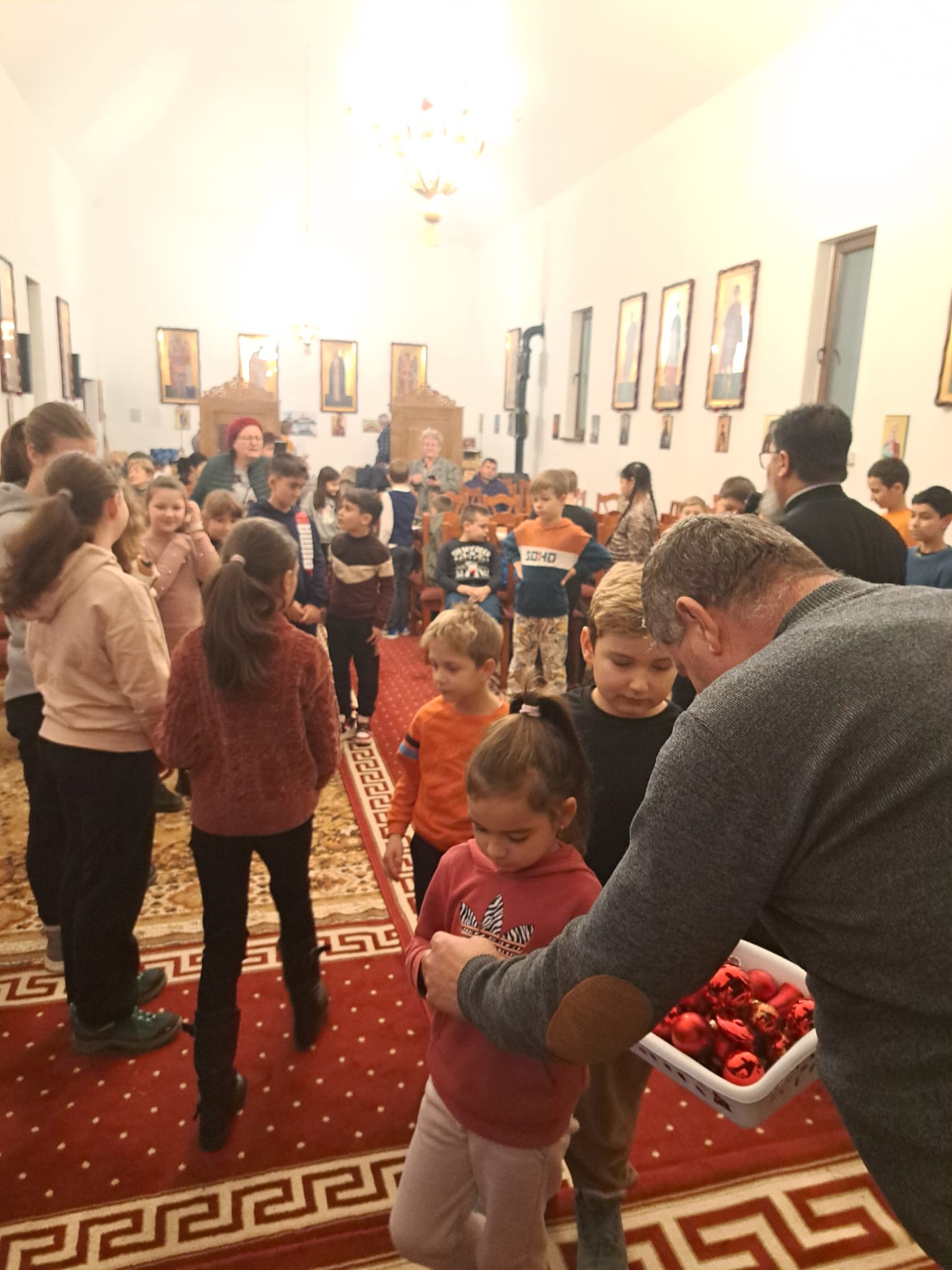 Miercuri, 6 decembrie a.c., în ziua prăznuirii Sfântului copiilor, la ceas de seară, tinerii s-au reîntâlnit pentru a împodobi, cu mult entuziasm și iscusință, bradul de Crăciun din paraclis. Ulterior, aceștia au colindat și s-au bucurat de frumusețea acestei sărbători, în pregătirea activităților care vor urma în zilele praznicului Nașterii Domnului. La final, tinerii creștini au fost recompensați cu daruri din partea lui Moș Nicolae.