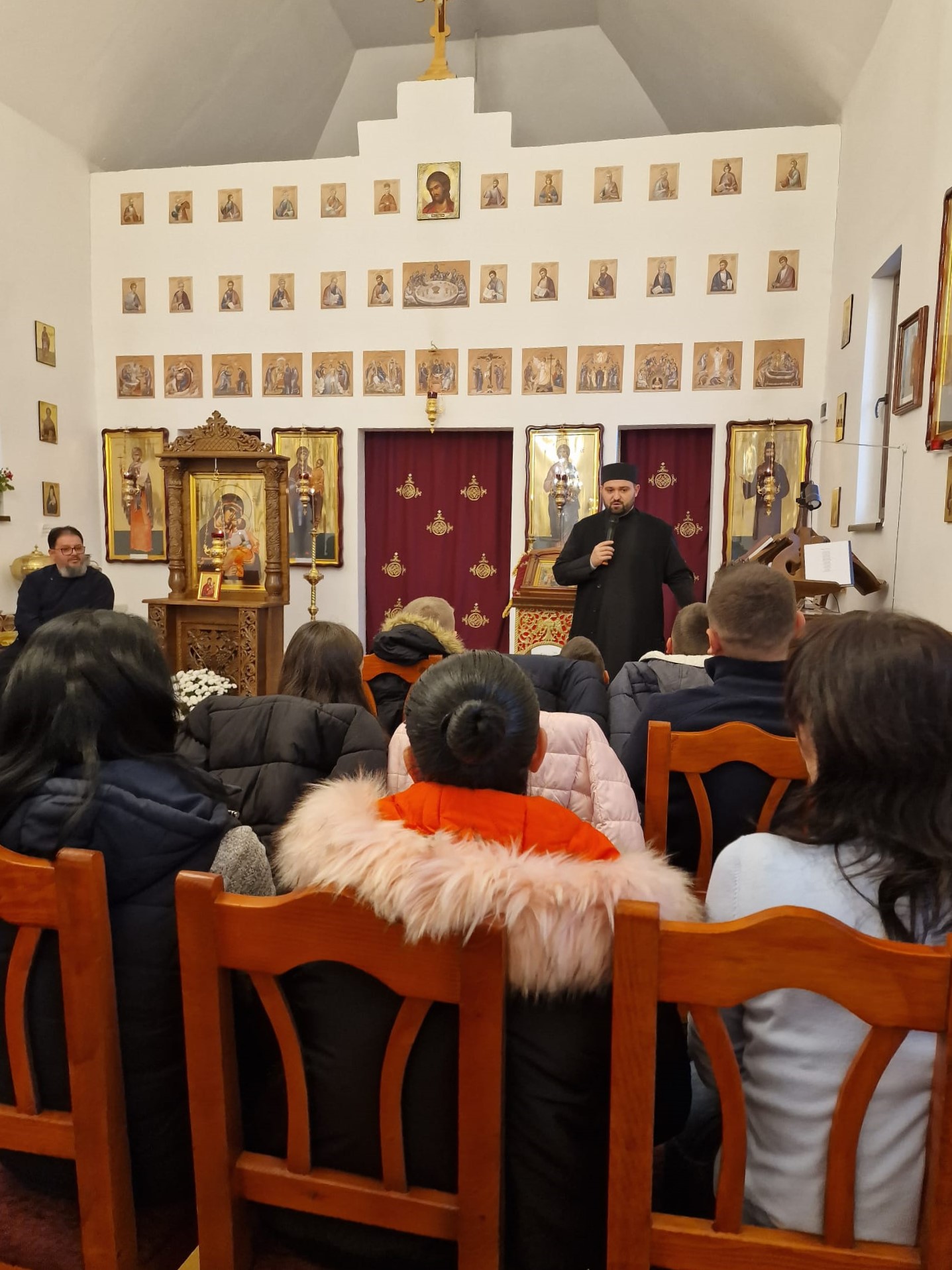 Luni, 4 decembrie 2023, a avut loc întâlnirea de cunoaștere și socializare, prilej cu care tinerii s-au cunoscut mai bine și au discutat pe baza activităților pe care doresc să le desfășoare în cadrul bisericii. De asemenea, a avut loc cateheza intitulată „Sfântul Nicolae – Izvor de milostenie și bucurie” susținută de către părintele Silviu Jimborean, inspector de tineret pentru județul Mureș în cadrul Eparhiei Alba Iuliei. Cu acest prilej, invitatul nostru special le-a vorbit tinerilor despre viața Sfântului Ierarh Nicolae și despre grija pe care acesta o poartă tuturor oamenilor, dar mai ales copiilor și tinerilor. De asemenea, părintele inspector a vorbit despre perioada specială în care ne aflăm, premergătoare Nașterii Domnului nostru Iisus Hristos, apreciind că „în sens comercial, lunii decembrie i-a fost atribuită semnificația lumească de «luna cadourilor», însă trebuie să fim cu luare aminte, să nu cădem în ispita goanei după lucrurile materiale, vremelnice, care în timp își pierd valoarea, ci să ne orientăm către darurile pe care ni le trimite Dumnezeu – Sfinții – și darul cel mai mare, pe Însuși Fiul Său Cel iubit, a căror valoare este incontestabilă și incomensurabilă”.