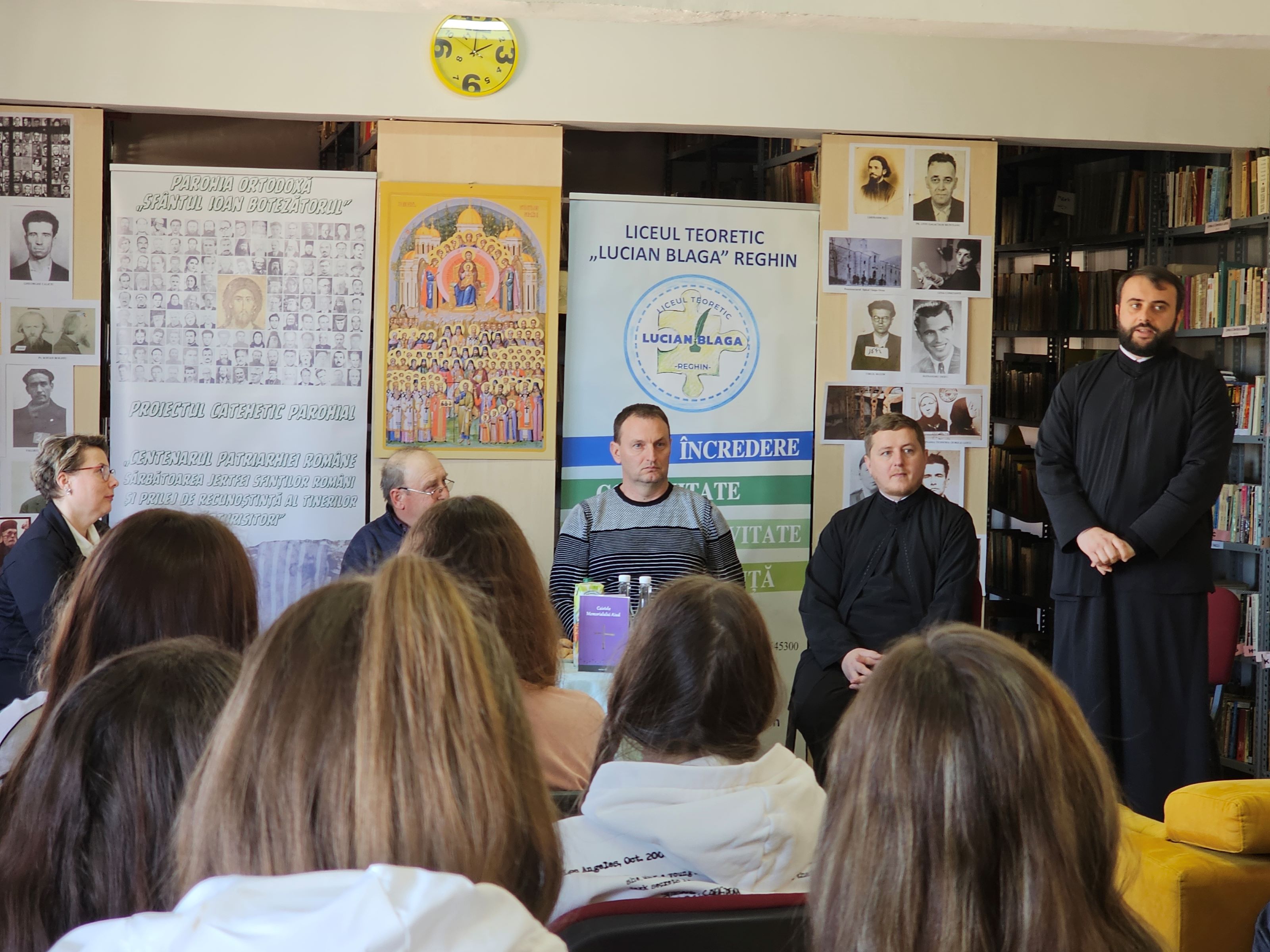 Astfel, joi, 20 martie, la Biblioteca Liceului Teoretic „Lucian Blaga” din municipiu a avut loc simpozionul „Mărturisitori în lanțuri – Oameni, Credință și Libertate în comunism”. Părintele prof. dr. Andrei Crișan și prof. Sabin Urzică au susținut prelegeri despre perioada comunistă și despre curajul duhovnicilor și mărturisitorilor din secolul XX. De asemenea, elevii liceului au prezentat lucrări despre diferite personalități, precum Sfântul Preot Mărturisitor Liviu Galaction Munteanu, Sfântul Cuvios Mărturisitor Sofian de la Antim și Niculina Moica, o tânără din Reghin care, la doar 16 ani, a fost întemnițată pentru convingerile sale.