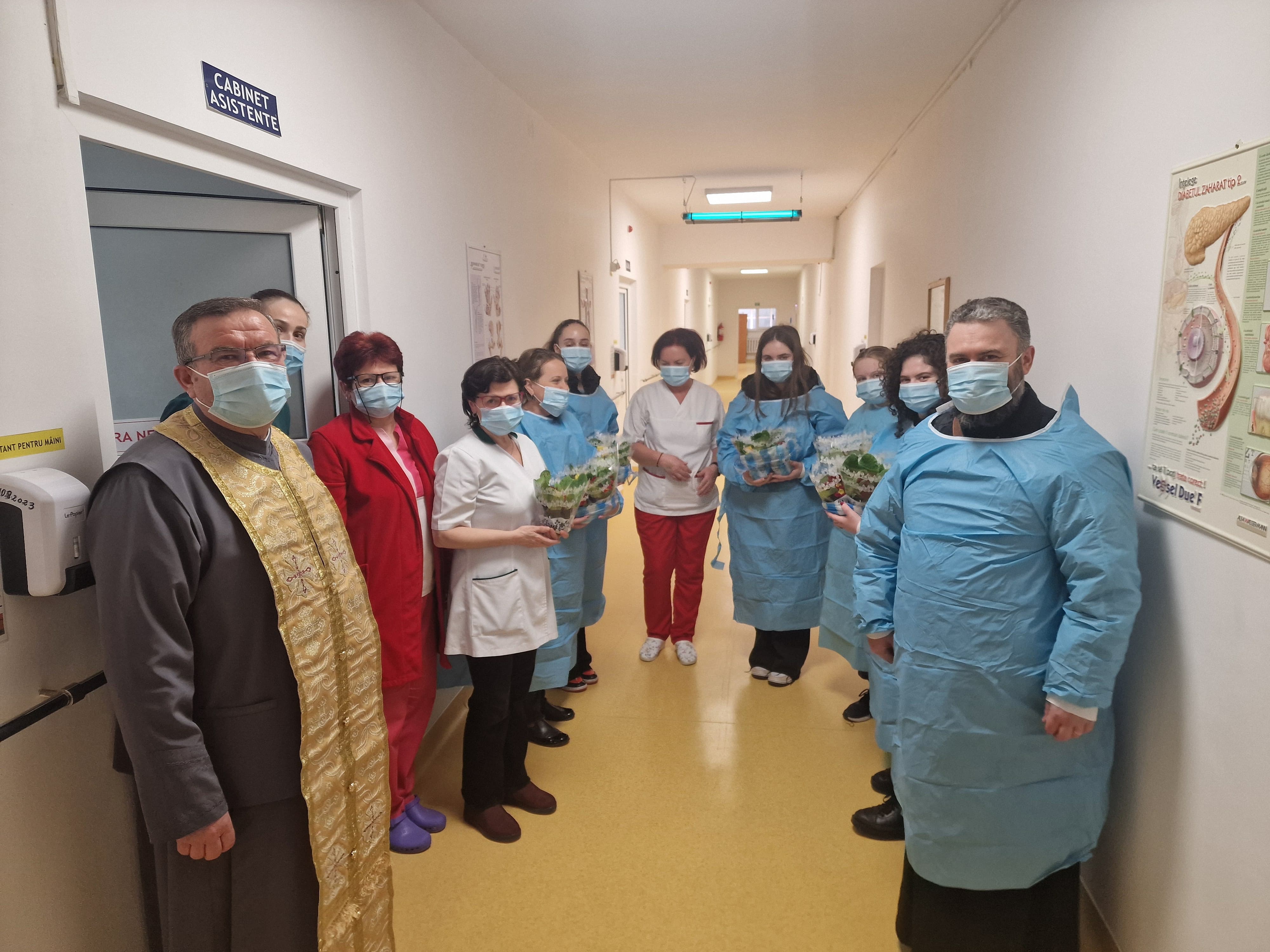 Cu ocazia vizitei la diverse secții din cadrul Spitalului Municipal Aiud, tinerii au împărțit flori doamnelor internate aici. În același timp, preoții care i-au însoțit s-au rugat pentru însănătoșirea tuturor bolnavilor. Nu au fost uitate nici cadrele medicale care veghează la paturile celor aflați în suferință, acestea fiind felicitate pentru întreaga dăruire și grijă pe care o oferă în timpul serviciului medical. În semn de apreciere, tinerii le-au oferit flori și cuvinte de mulțumire.