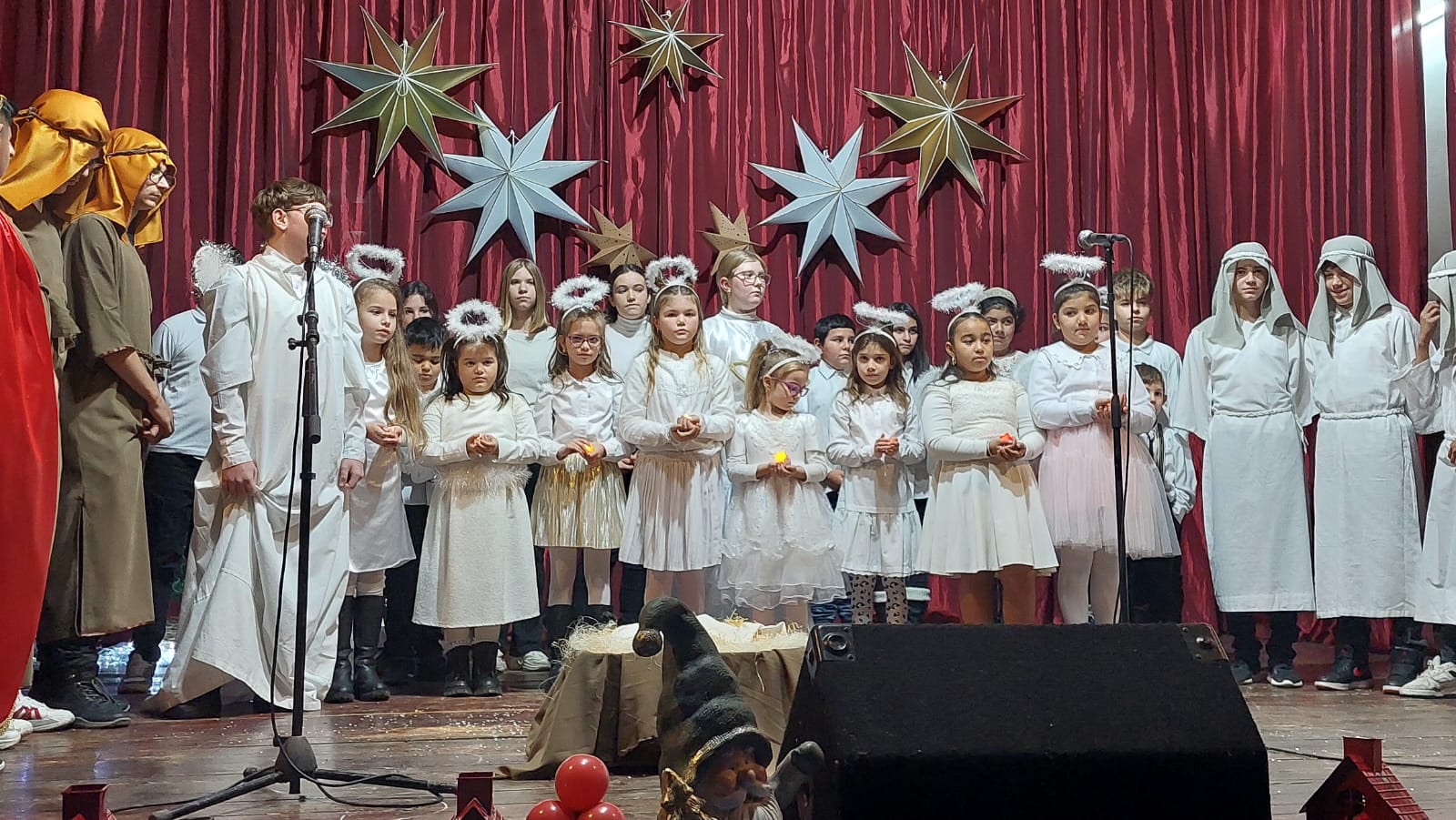 Joi, 12 decembrie 2024, începând cu ora 17.00, la Casa de Cultură „Ion Sângereanu” din Ocna Mureș, Asociația Filantropia Ortodoxă Alba Iulia – Filiala Ocna Mureș a organizat un minunat concert de colinde, în prezența unui numeros public. Au urcat pe scenă cei 78 de copii ocrotiți în centrele sociale din Ocna Mureș și Războieni, așezăminte aflate sub atenta coordonare a doamnei Raluca Orga, precum și 50 de copii aparținând Ansamblului „Tradiții Uiorene” din Ocna Mureș, coordonați de doamna Liana Stoica.
