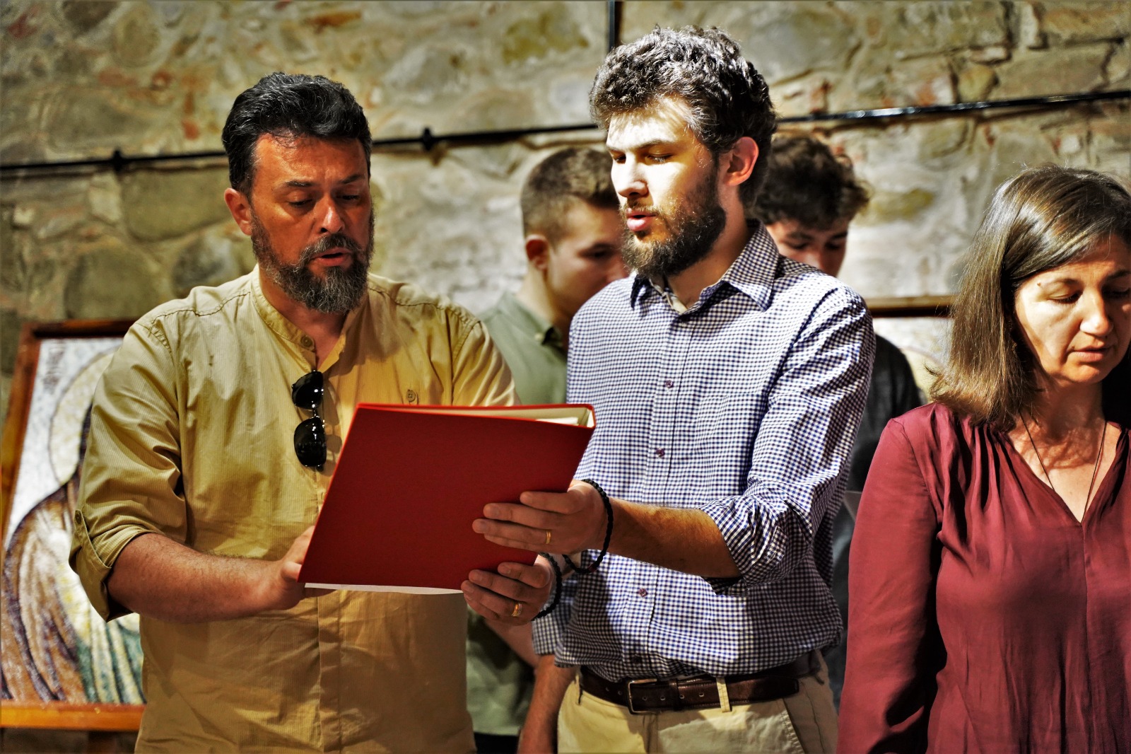 Făcând referire la operele artistice ale studenților, lect. univ. dr. Sorin Albu a subliniat următoarele: „Lucrările realizate sunt imagini-simbol de o putere extraordinară care au menirea să strângă în jurul lor, precum albinele într-un stup, persoanele în jurul Mântuitorului Iisus Hristos. Tema din anul I este Sfânta Mahramă cea nefăcută de mână omenească, pornind de la ideea unei icoane-Agneț, pentru o conștientizare mai plenară a Jertfei Mântuitorului Iisus Hristos”. În ultima parte a evenimentului, membrii Grupul „Sfântul Ioan Damaschin” din Cluj-Napoca, coordonați de către lect. univ. dr. Sorin Albu, au interpretat imnul bizantin „Ecouri din Insula Patmos”. La final, expoziția icoanelor realizate în tehnica mozaicului a fost declarată deschisă publicului vizitator. Cei doritori pot admira lucrările până la jumătatea lunii iulie.