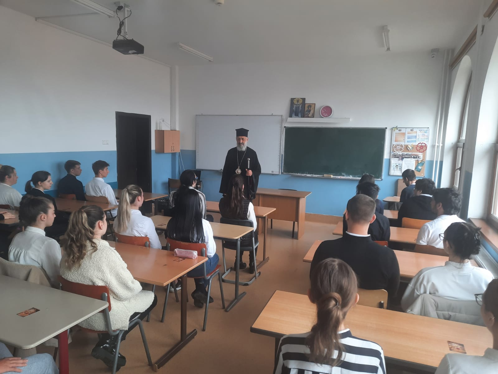 În data de 4 noiembrie a.c., Părintele Arhiepiscop Irineu a poposit la Seminarul Teologic Ortodox „Sfântul Simion Ștefan” din Alba Iulia. Cu acest prilej, Arhipăstorul nostru s-a întâlnit cu elevii clasei a XII-a B, din cadrul secției Filologie.