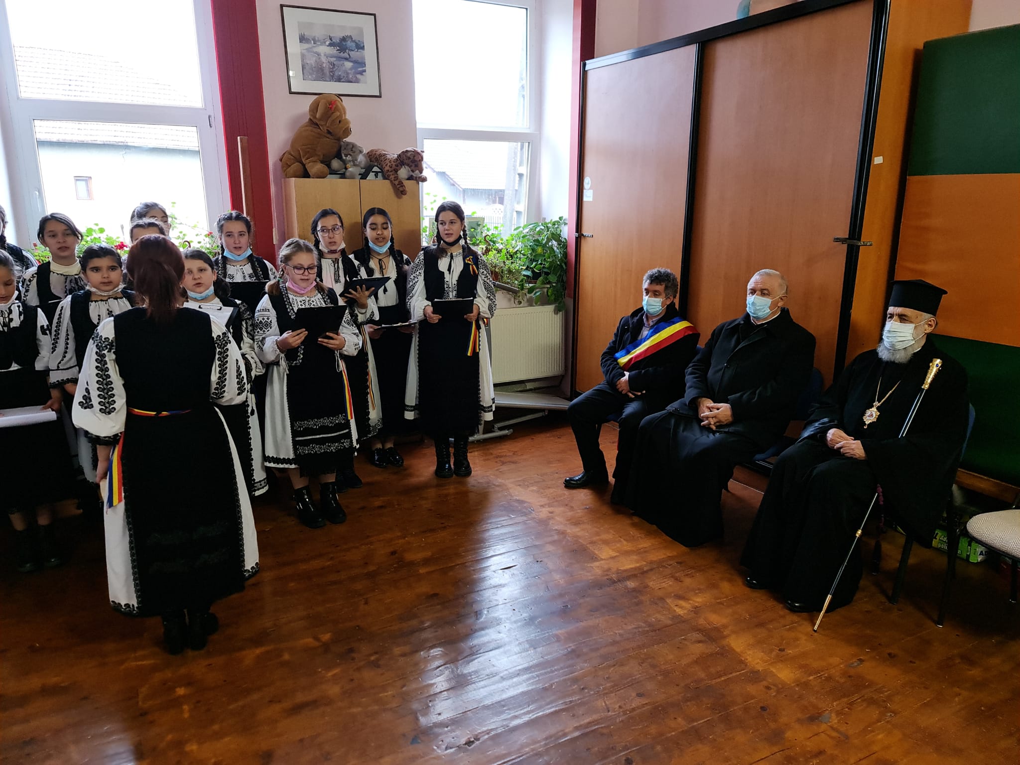 În prima parte a vizitei, Chiriarhul nostru a poposit în mijlocul elevilor claselor primare, cărora le-a adresat cuvinte folositoare de suflet și sfaturi duhovnicești. Apoi, Părintele Arhiepiscop Irineu s-a întâlnit cu tinerii din clasele gimnaziale, cărora le-a vorbit despre Nașterea Mântuitorului și peștera din Betleem. În continuare, Ierarhul Alba Iuliei a fost colindat de către corul Școlii Gimnaziale, coordonat de către prof. Anca Știop, fiind astfel întregită bucuria acestui moment cu totul deosebit. La finalul vizitei, Înaltpreasfinția Sa a vizitat expoziția etnografică amenajată în incinta unității de învățământ, unde sunt expuse peste 900 de piese etnografice.