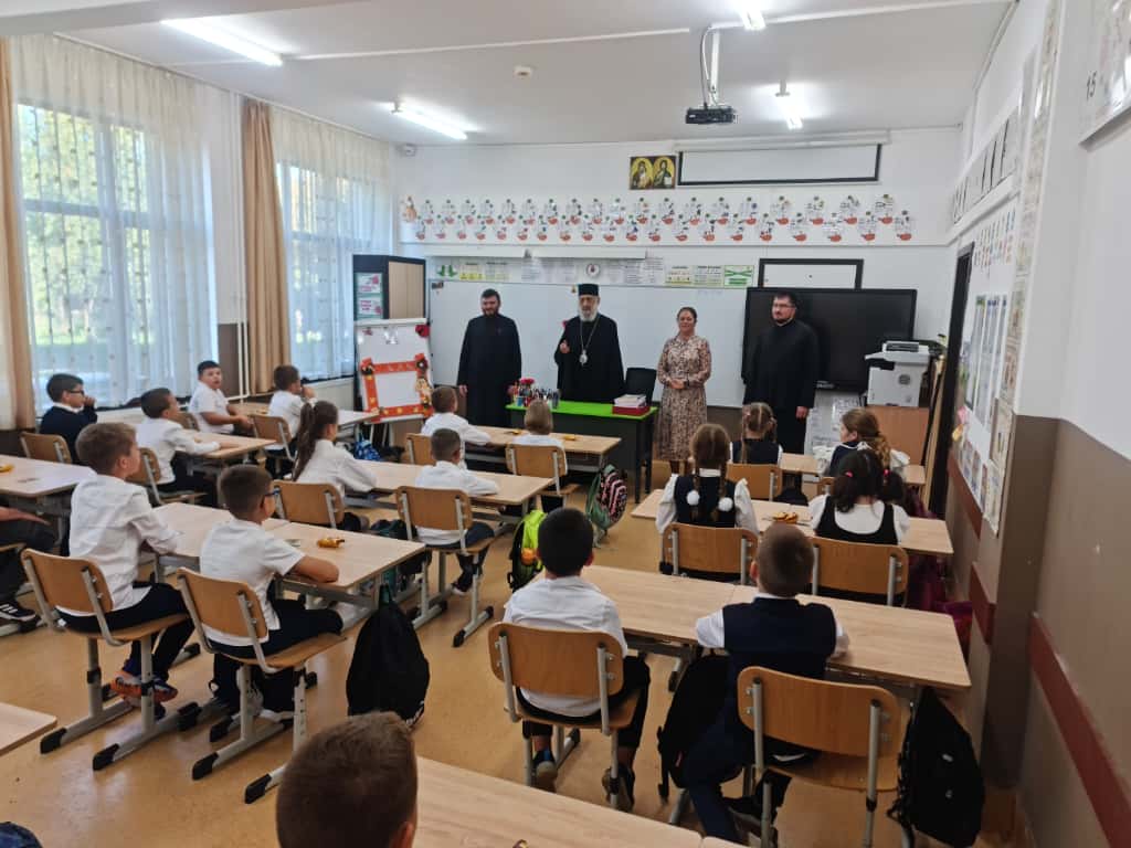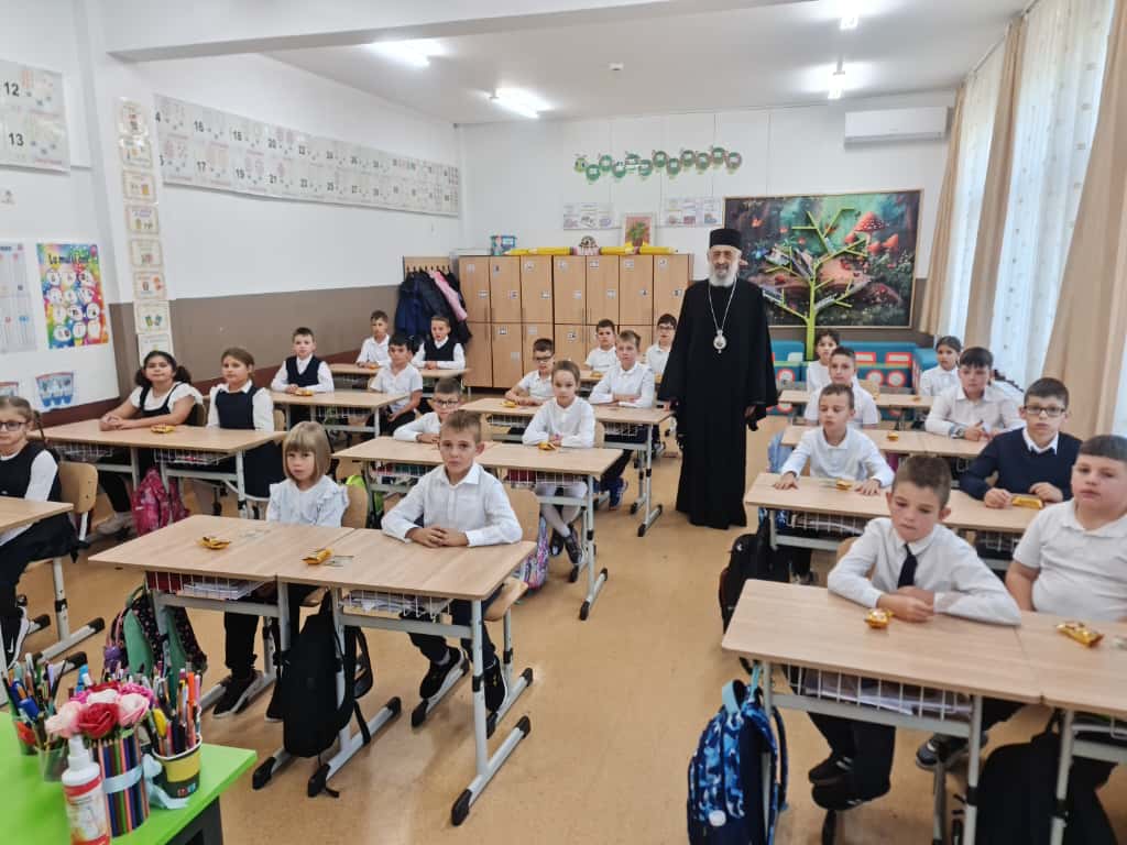 Vineri, 19 septembrie a.c., începând cu ora 10.00, Înaltpreasfințitul Părinte Arhiepiscop Irineu a efectuat o vizită pastorală la Seminarul Teologic Ortodox „Sfântul Simion Ştefan” din municipiul Alba Iulia. Ierarhul nostru, însoțit de părintele profesor drd. Ioan Nistor, directorul unității de învățământ, s-a întâlnit cu elevii clasei a II-a. Arhipăstorul nostru le-a adresat micilor învățăceicuvinte ziditoare de suflet, iar la final le-a oferit iconițe și dulciuri. Prin vizitele periodice pe care le efectuează la școlile teologice, Chiriarhul Alba Iuliei se îngrijește îndeaproape de formarea și fortificarea spirituală a tinerelor generații.