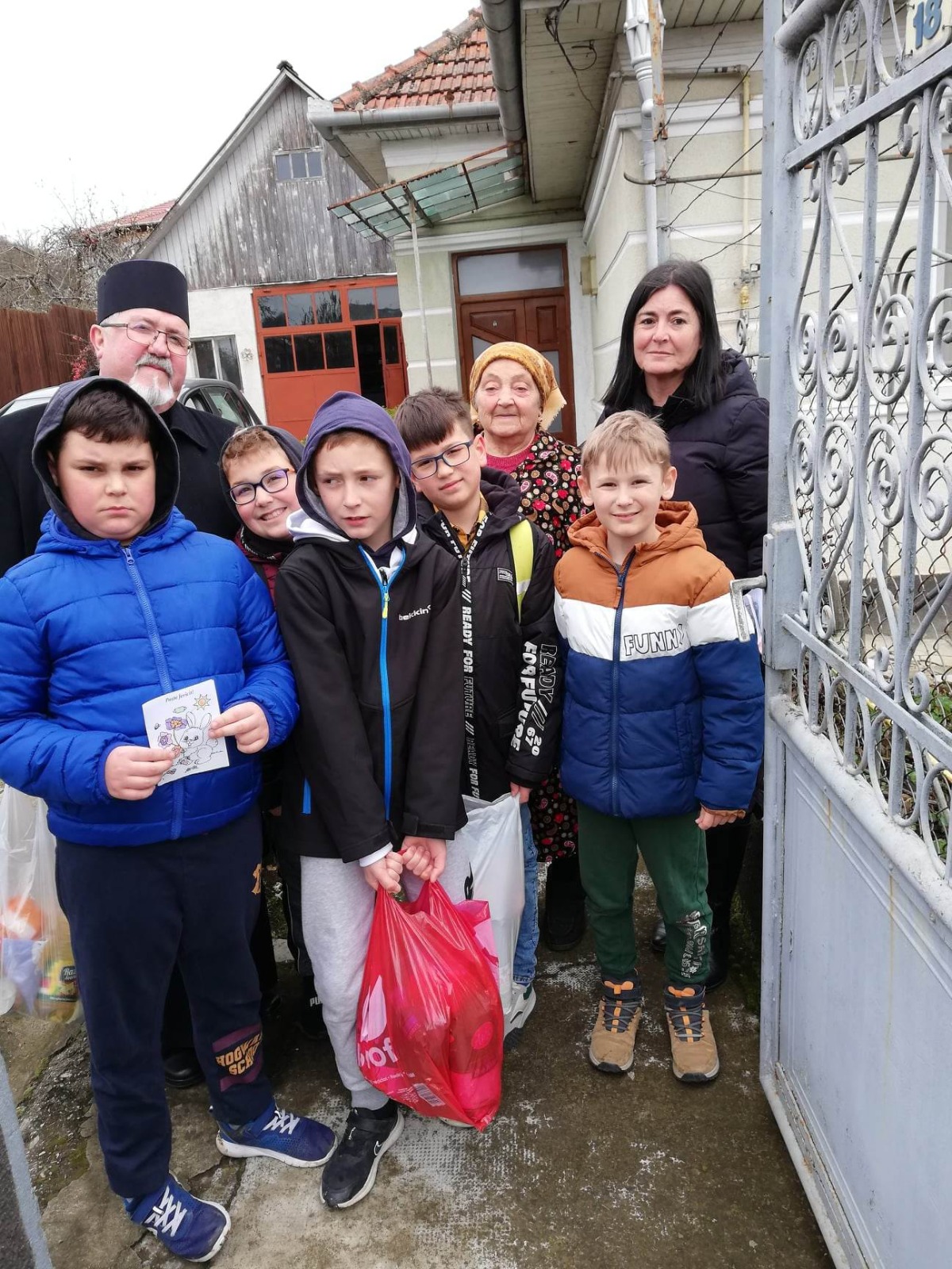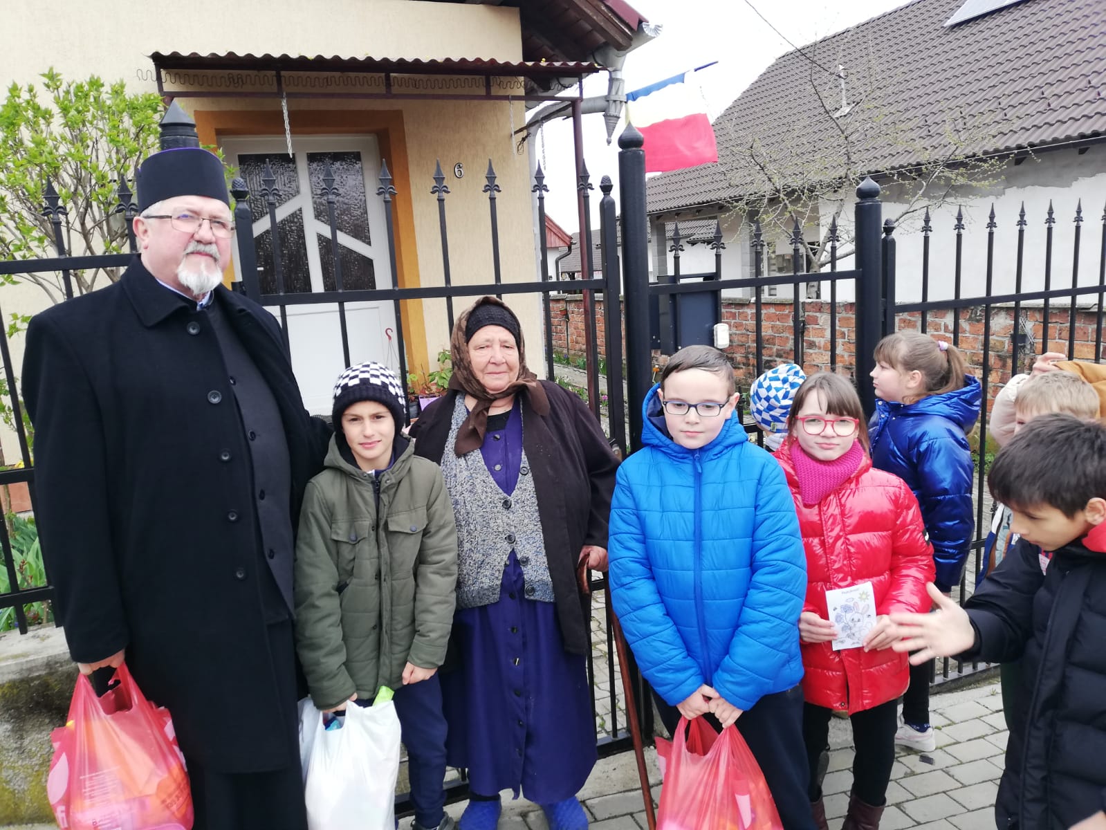 Miercuri, 5 aprilie a.c., elevii clasei a II-a A de la Școala Gimnazială „Ovidiu Hulea”, în parteneriat cu Parohia Ortodoxă Aiud III, au organizat acțiunea umanitară „Dăruind vei dobândi”. Școlarii participanți la proiectul cultural-catehetic „Două inimi care bat sincron pentru Dumnezeu: elanul și candoarea copilăriei pandant cu blândețea și cumpătul bătrâneții”, însoțiți de părintele pensionar Ioan Aloman și de subsemnata, au vizitat câteva văduve vârstnice de pe două străzi din preajma bisericii „Adormirea Maicii Domnului” (Salcâmilor și Florilor), oferindu-le daruri, felicitări cu prilejul sărbătorilor ce se apropie și o vorbă de suflet.