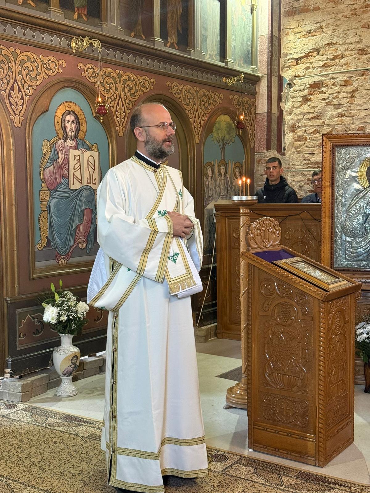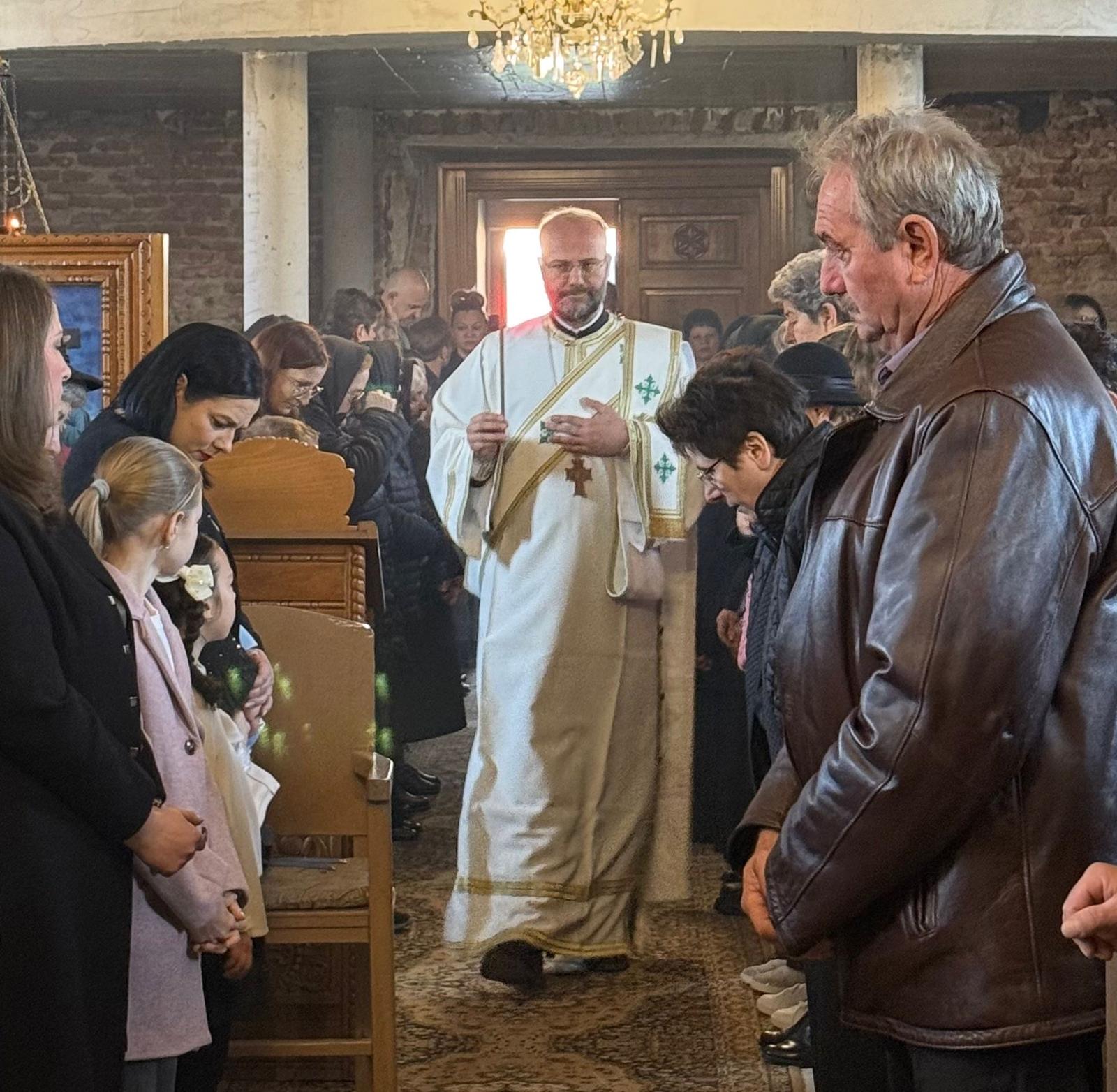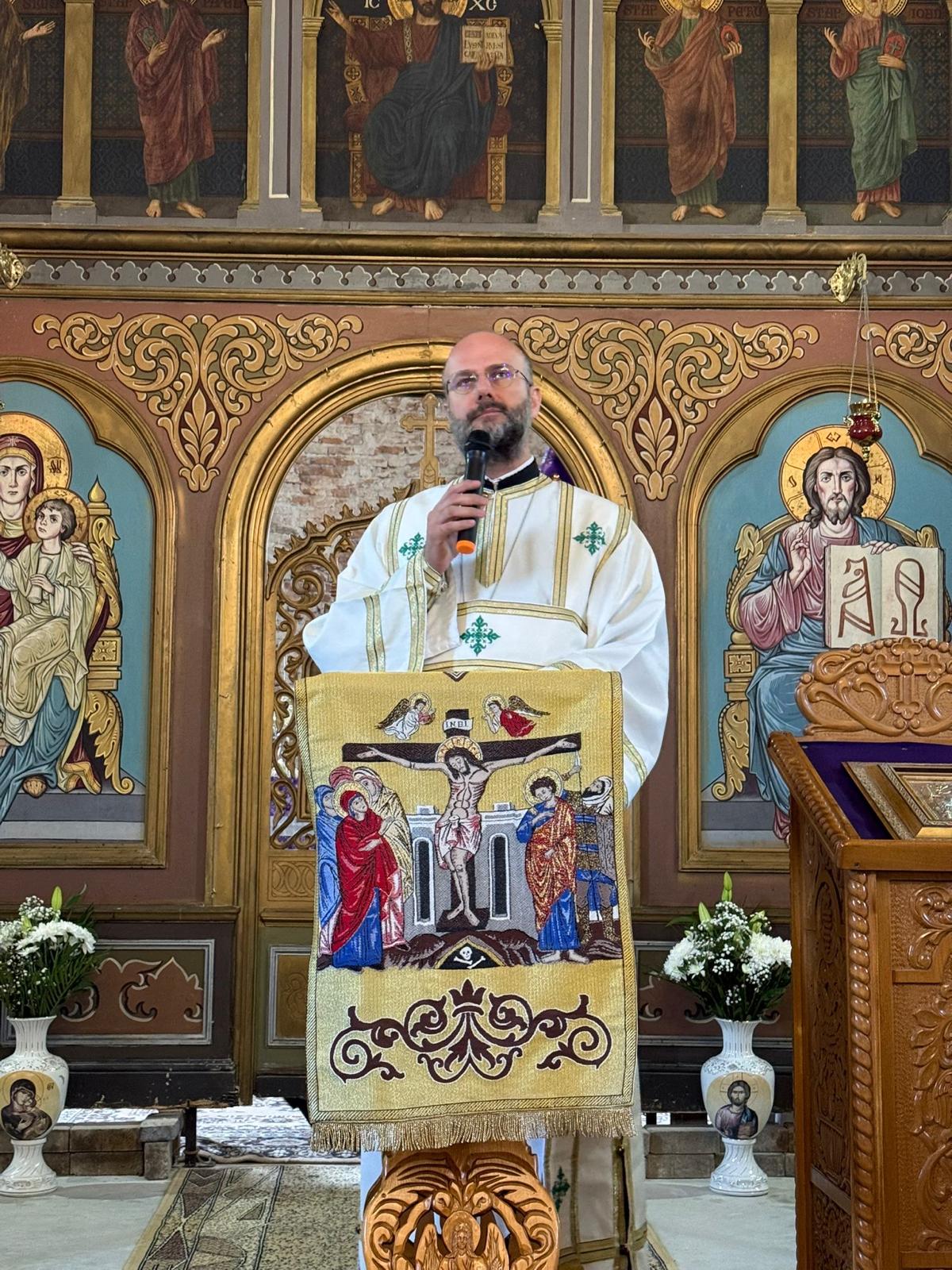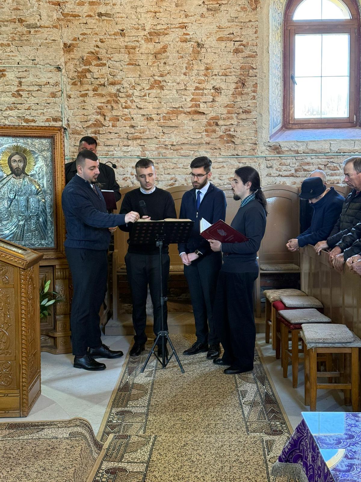 Cuvântul de învățătură din cadrul Sfintei Liturghii a fost rostit de către părintele Răzvan Brudiu, sfinția sa oferind credincioșilor prezenți o tâlcuire la pericopei evanghelice lecturate în cadrul slujbei, dar și unele repere duhovnicești pentru săptămâna Sfintelor Pătimiri. Totodată, părintele decan a prezentat oferta educațională a celor două prestigioase instituții de învățământ teologic bălgrădene, îndemnându-i pe cei tineri să devină elevi, respectiv studenți, în cetatea Marii Uniri. La final, în calitate de gazdă, am adresat alese mulțumiri oaspeților noștri de la Alba Iulia – părintelui decan Răzvan Brudiu și tinerilor teologi – pentru prezența în mijlocul comunității ortodoxe din Sâncel și pentru împreuna slujire.