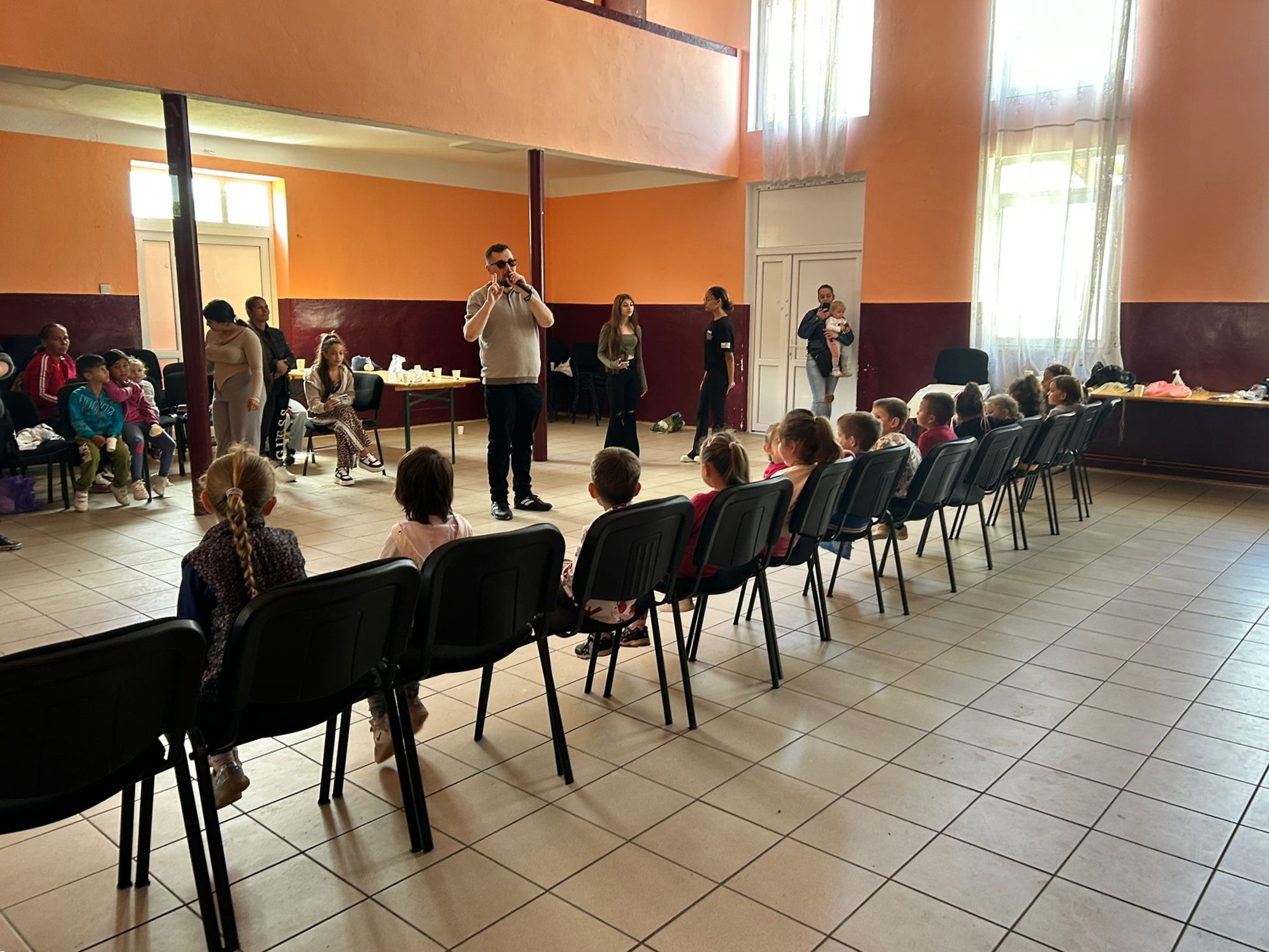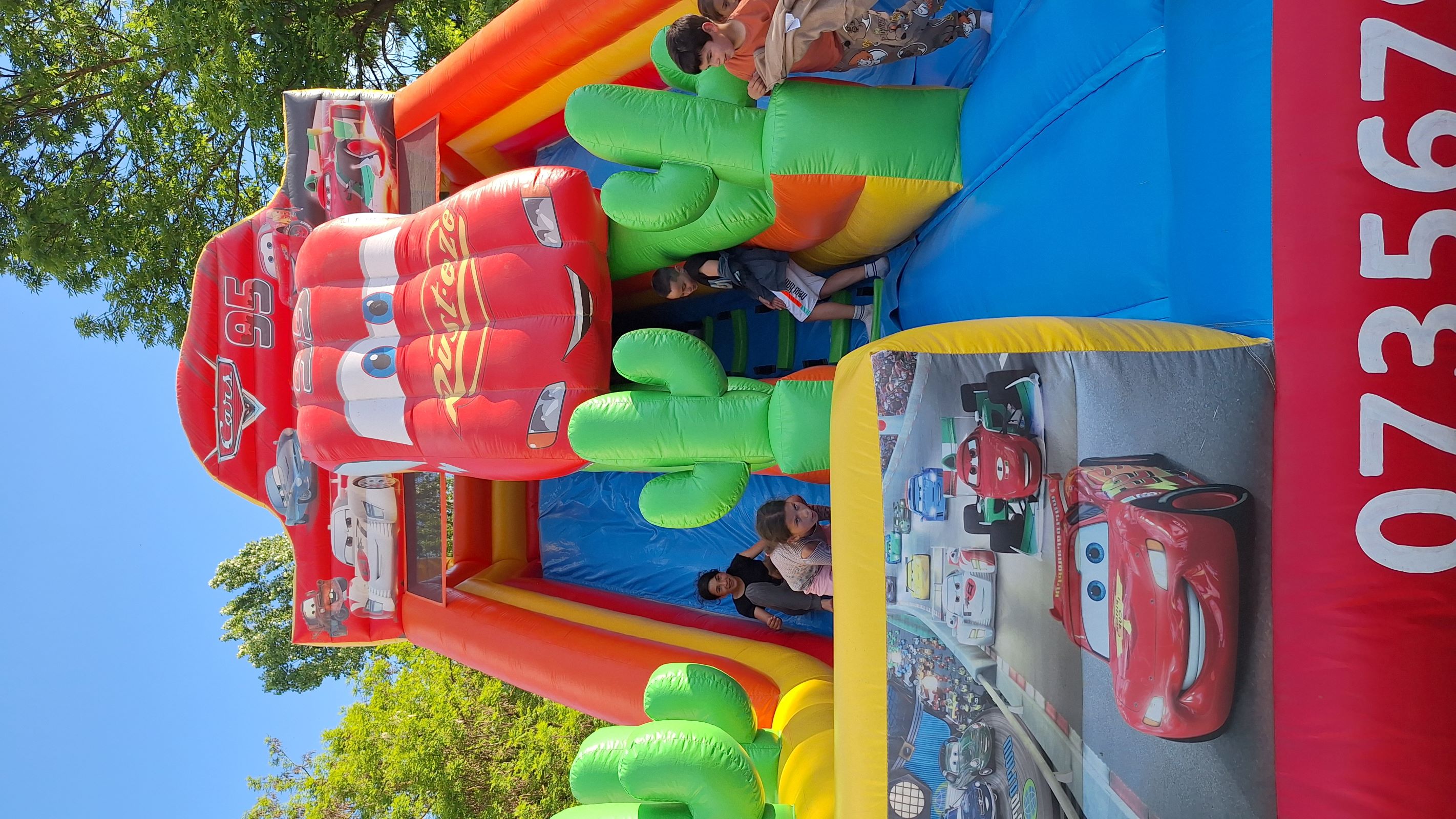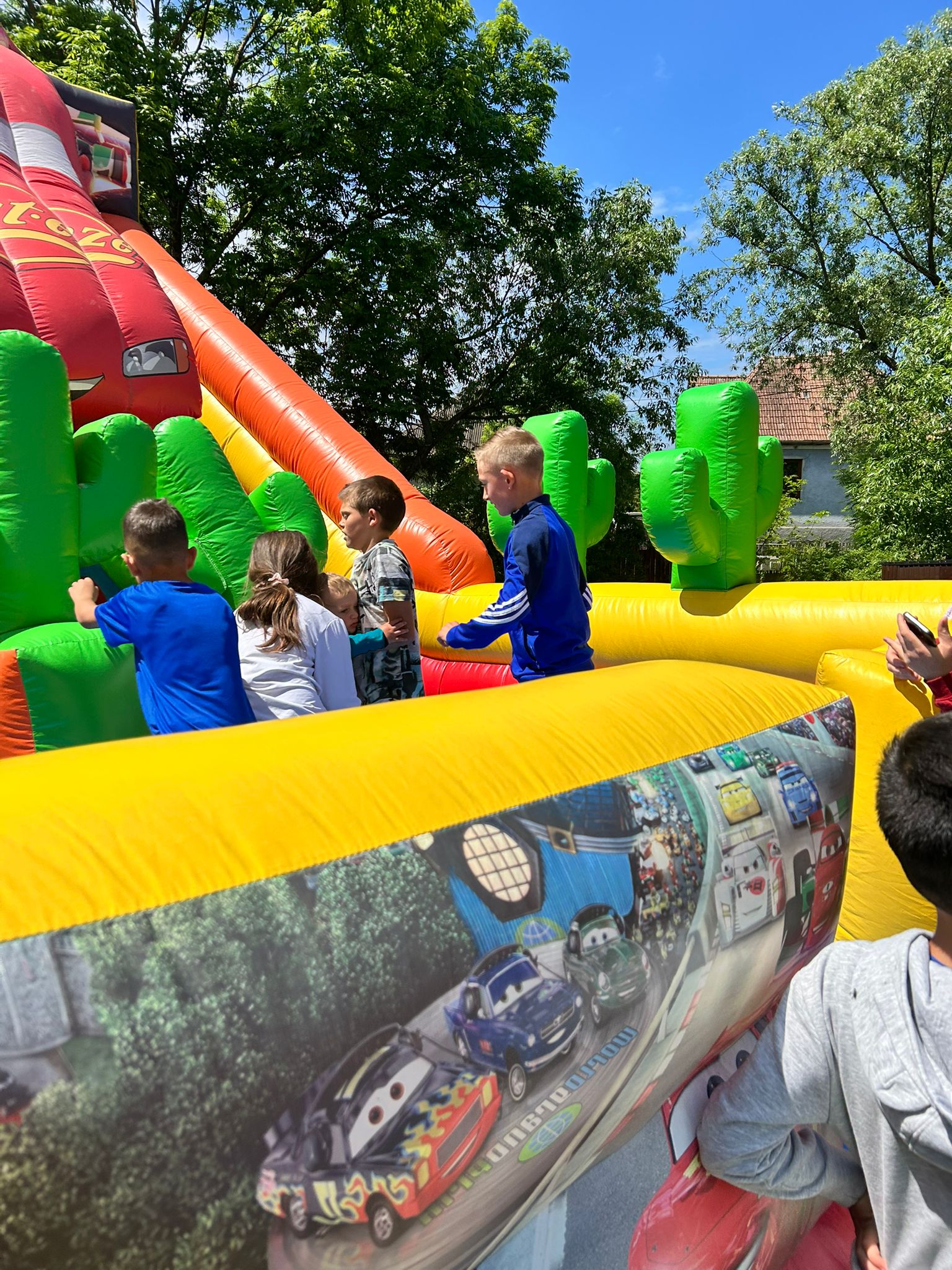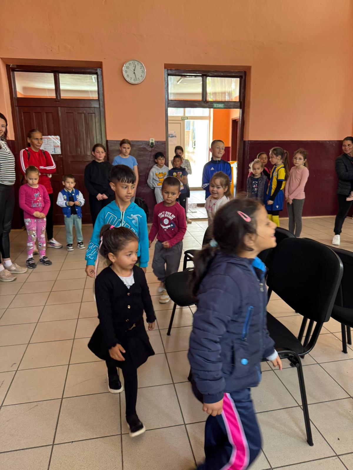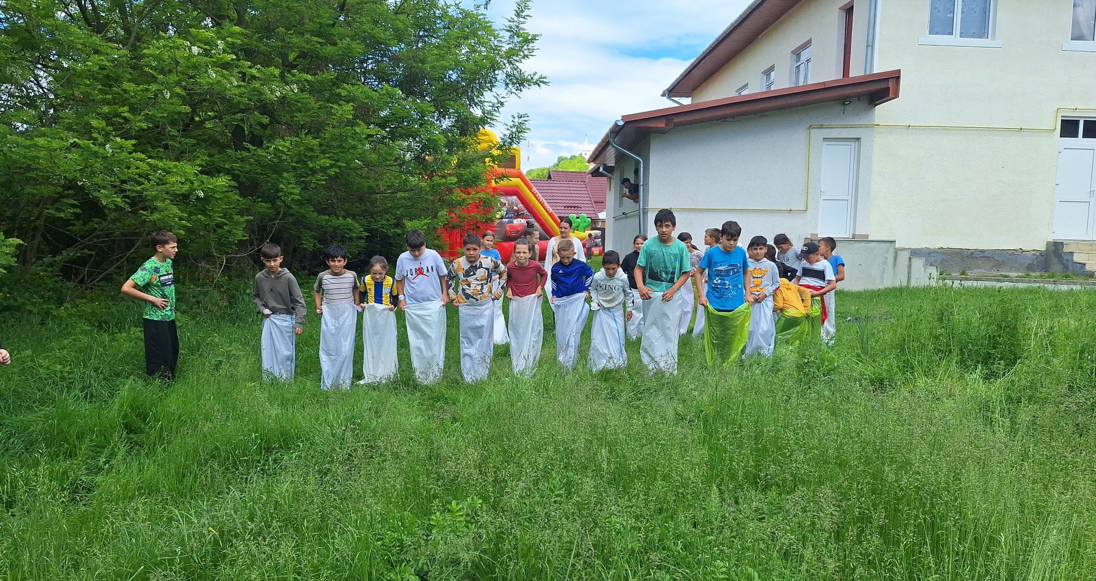 Evenimentul, desfășurat pe parcursul întregii zile, a avut loc la Căminul Cultural din localitate, un spațiu generos care a permis organizarea activităților într-un cadru sigur, vesel și potrivit vârstei participanților. Copiii au fost împărțiți în trei grupe de vârstă: preșcolari, școlari (clasele I–IV) și gimnaziu. Într-o organizare atentă și rotativă, fiecare grupă a participat, pe rând, la activitățile recreative, în timp ce celelalte se bucurau de marea surpriză a zilei – toboganul gonflabil, o adevărată atracție pentru cei mici.