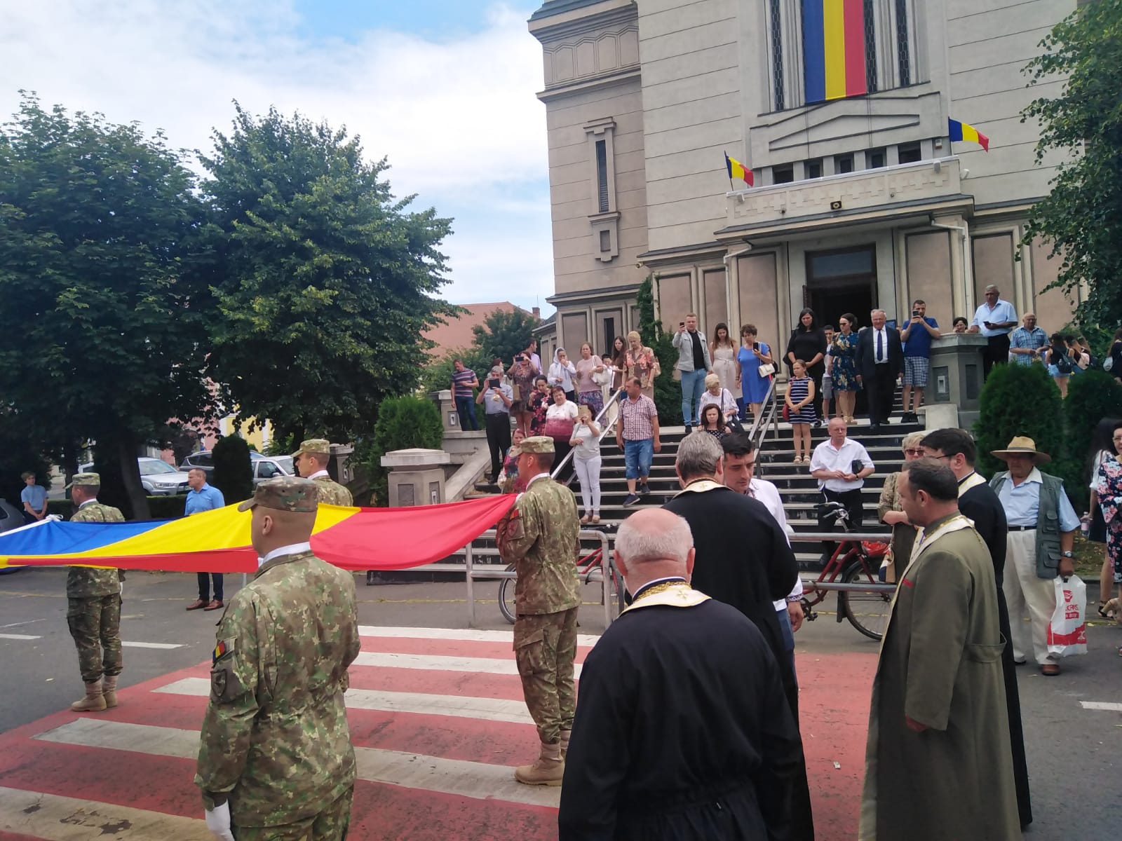 Cu acest prilej, credincioșii târgumureșeni, împreună cu slujitorii lor, au celebrat Sfânta Liturghie, după care au luat parte la slujba de binecuvântare a drapelului național, în catedrala mare din municipiul reședință de județ. Acest moment a fost urmat de o scurtă procesiune în fața statuii eroului Avram Iancu, unde, pe acordurile imnului național, drapelul național a fost înălțat, în prezența oficialităților locale. Momentul festiv de astăzi s-a bucurat de prezența grupului de muzică psaltică Anastasios, care a încântat audiența cu cântece patriotice și religioase.
