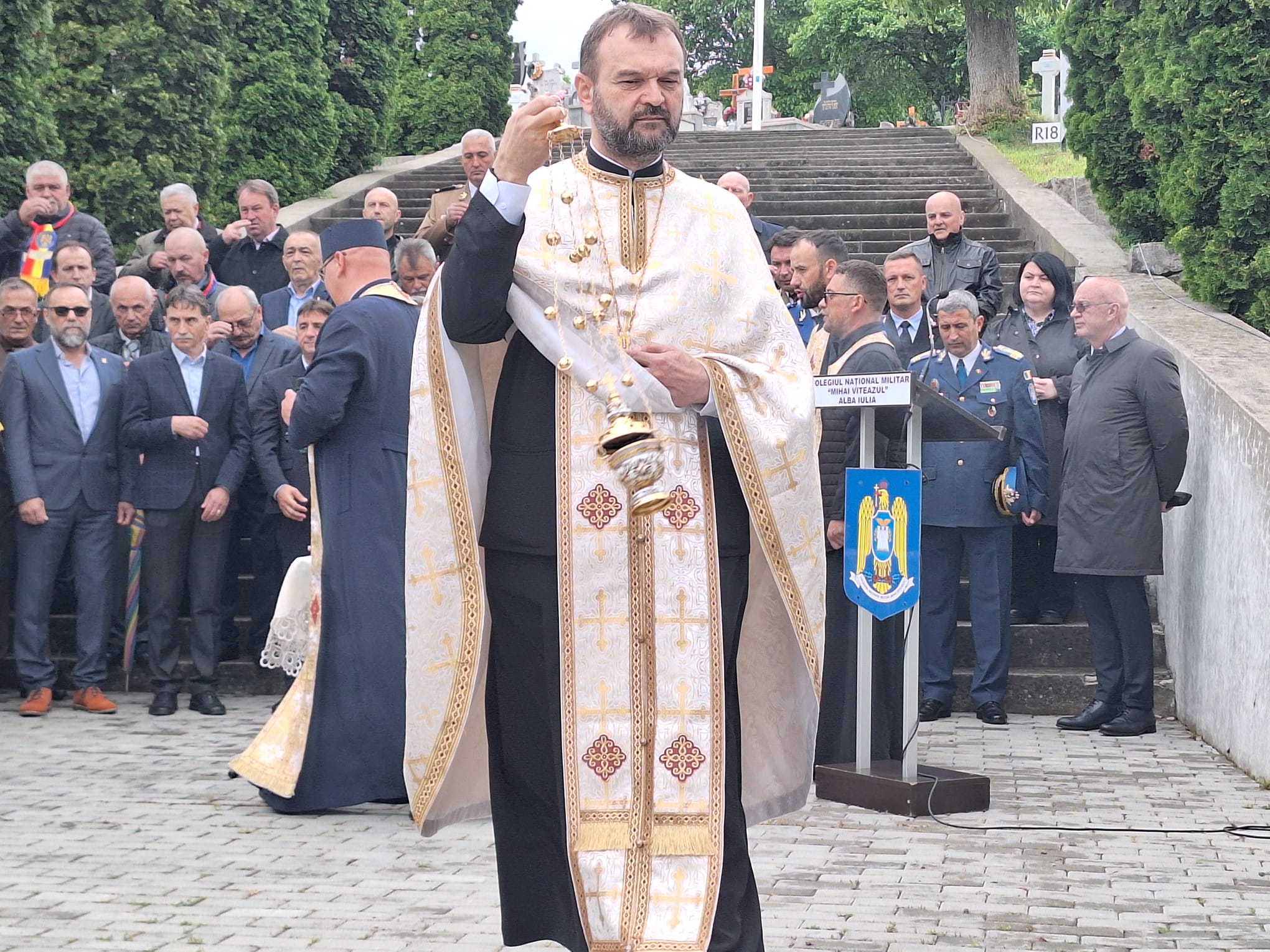 În fiecare an, de Înălțarea Domnului – Ziua Eroilor, sărbătoare națională a poporului român, sunt oficiate slujbe de pomenire în semn de neuitare, prețuire și recunoștință față de eroii care s-au jertfit pentru neam, credință și țară. Această zi cu totul deosebită a fost marcată și la Cimitirul Eroilor din municipiul Alba Iulia, joi, 29 mai 2025, de la ora 12.00. Evenimentul a debutat cu intonarea imnului național, după care a fost oficiată slujba parastasului de către un sobor de preoți, în fruntea căruia s-a aflat părintele Teofil Slevaș, preot al parohiei Alba Iulia – Maieri II și protoiereu al protopopiatului Alba Iulia. Apoi, Colonel Florin Câmpean, Comandantul Garnizoanei Alba Iulia, a rostit o alocuțiune în care subliniat însemnătatea istorică a Zilei Eroilor, marcată anual de Praznicul Înălțării Domnului.