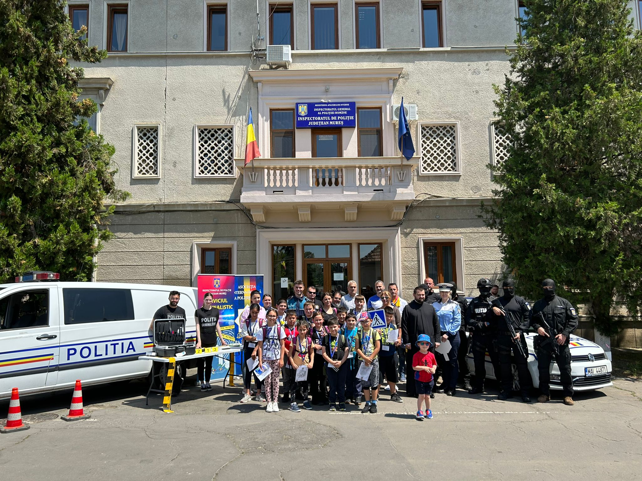 Sărbătoarea a început la primele ore ale dimineții, când grupul de copii a ajuns la Platoul Cornești, unde cei mici au servit micul dejun în compania polițiștilor, au vizitat Grădina Zoologică din Târgu-Mureș, iar înainte de plecare s-au răcorit servind desertul favorit al sezonului: înghețată. Din lista obiectivelor vizitate nu putea lipsi sediul IPJ Mureș, unde copiii au fost întâmpinați de standurile, atelierele și activitățile polițiștilor criminaliști, rutieri și de acțiuni speciale. Astfel, au putut vedea cum arată îndeaproape echipamentele tehnice cu care sunt dotați polițiștii criminaliști, au aflat curiozități despre operațiunile în care sunt implicați aceștia și au făcut cunoștință cu Ziggy, unul dintre câinii de căutare și salvare ai IPJ Mureș. De asemenea, și-au reîmprospătat cunoștințele de educație rutieră, s-au familiarizat cu aparatura tehnică specifică „de teren” a unui polițist rutier (radar, alcooltest, drugtest) și au observat cum funcționează mijloacele de avertizare sonoră și luminoasă. Caracterizați de curiozitatea specifică vârstei, micii vizitatori și-au îmbogățit bagajul de cunoștințe cu privire la cariera de polițist (intrare în profesie, promovare, incompatibilități cu profesia) și uniforma specifică. Prin intermediul poveștii „Insultele nu sunt deloc amuzante”, gazdele au expus aspecte legate de bullying, efectele negative ale acestuia și modalități pașnice cu privire la modul în care să reacționăm în fața situațiilor de bullying și de conflict. Turul celor mici s-a încheiat cu daruri, astfel că fiecare copil a primit din partea polițiștilor câte un ghiozdan cu rechizite școlare și bunătăți.
