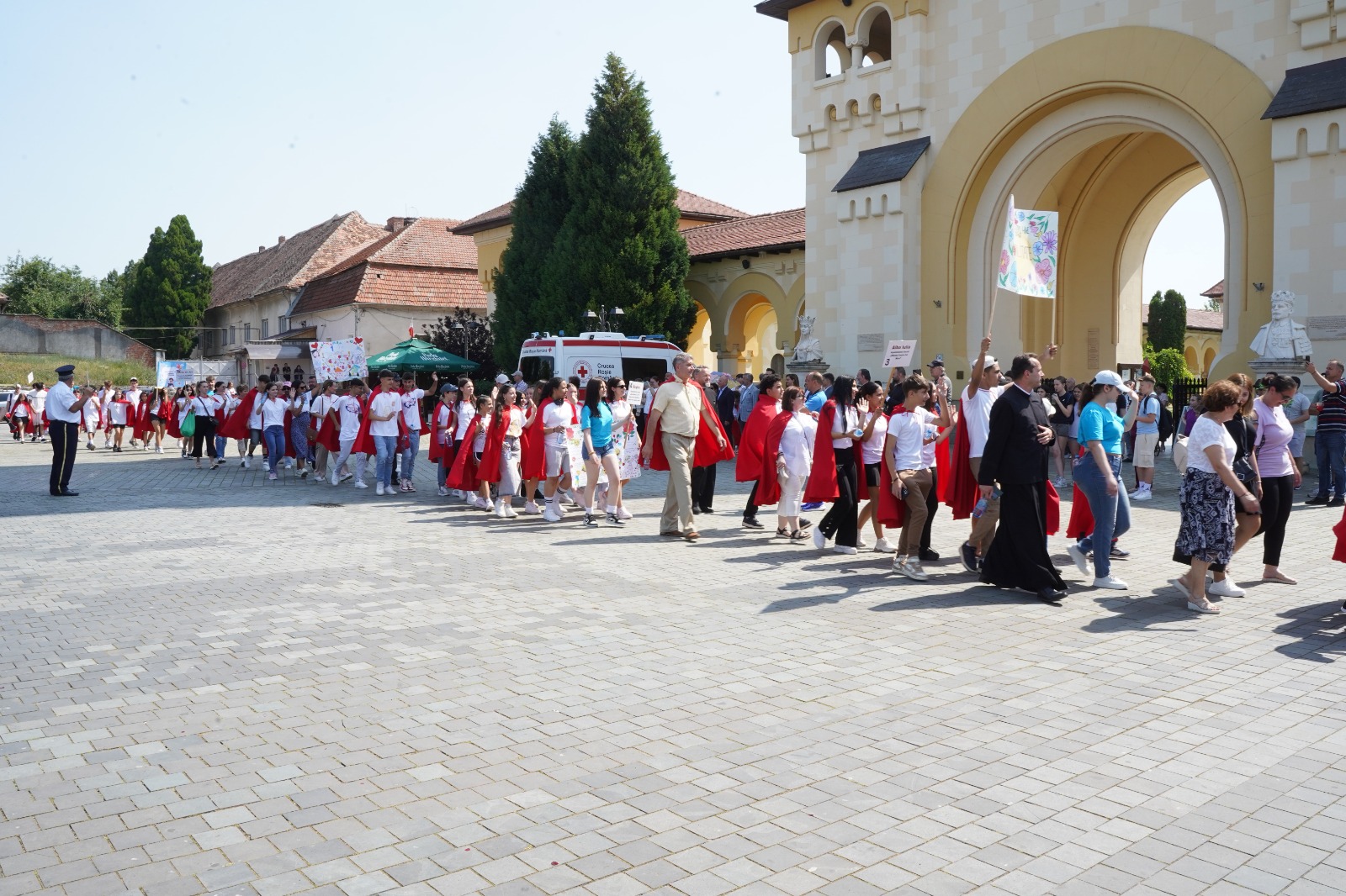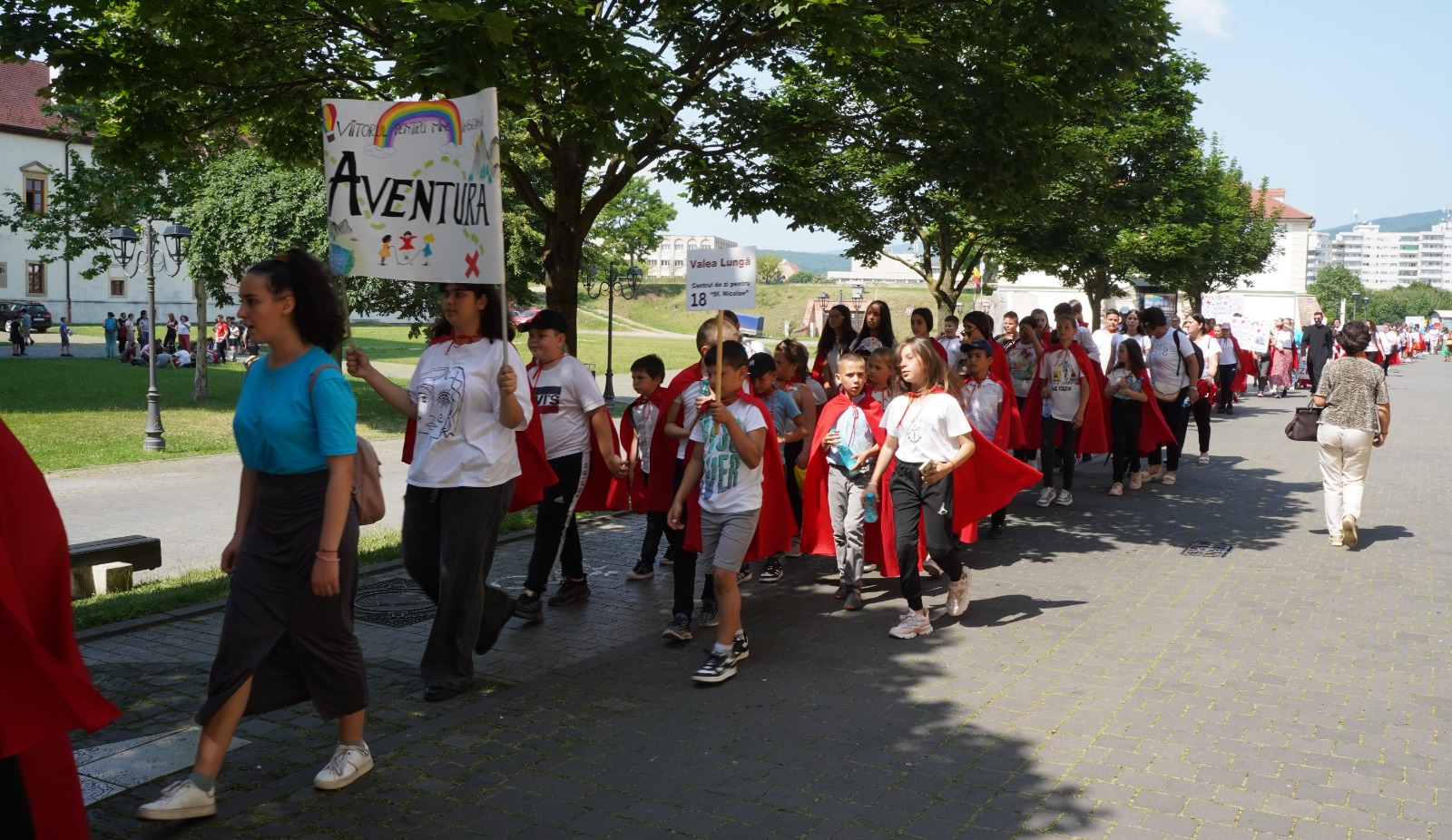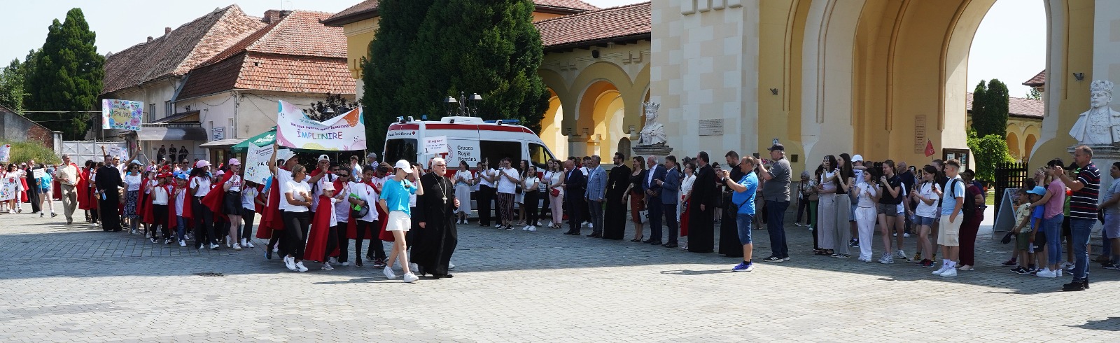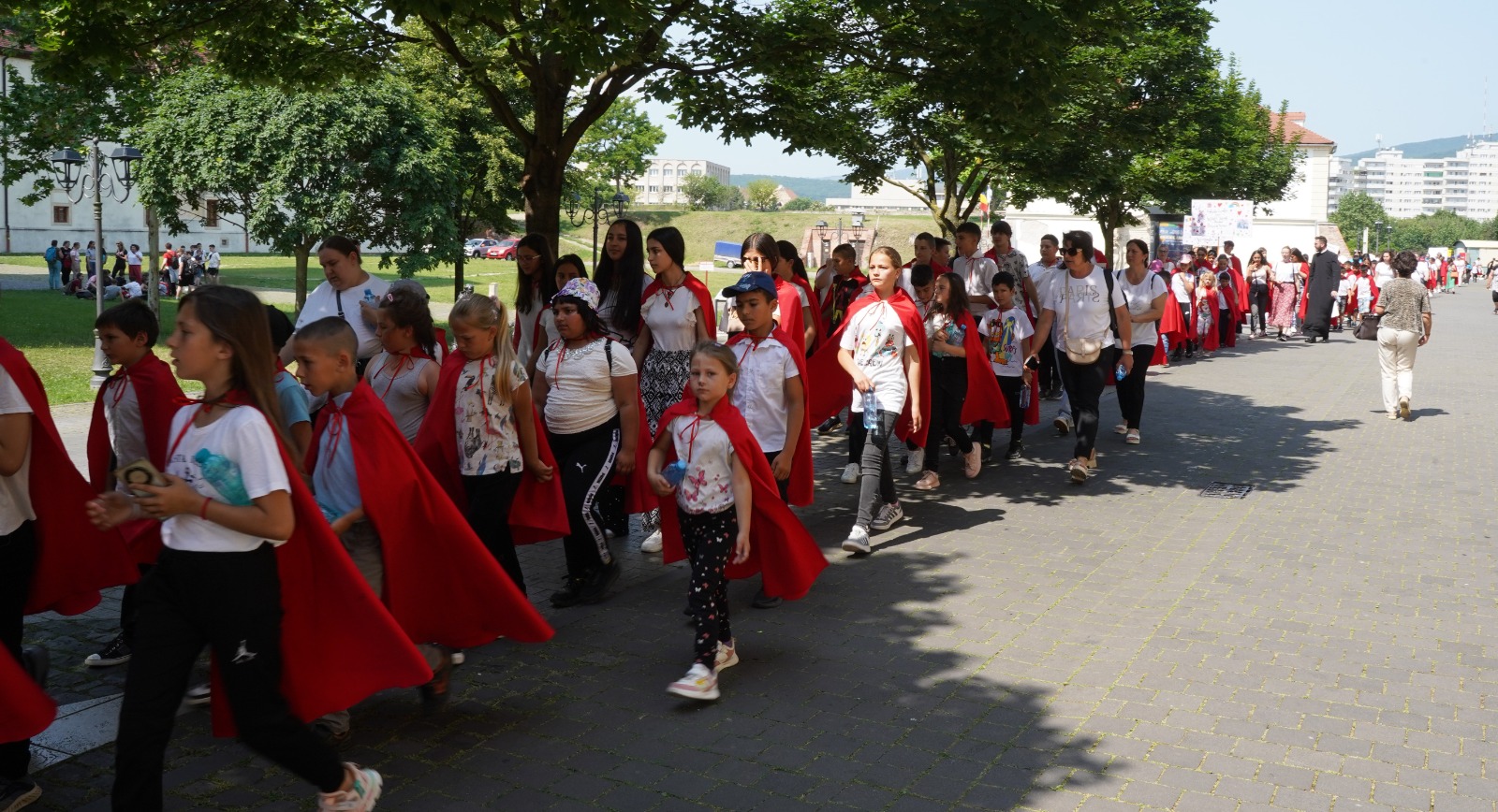 La ieșirea din Catedrală, participanții proveniți din întreaga Eparhie au realizat o poză de grup, pe treptele locașului de închinare. Apoi, pe acordurile muzicale ale fanfarei Centrului de Cultură „Augustin Bena” Alba, cei peste 700 de tineri și copii au defilat, urmând traseul: Piața Tricolorului – Strada Mihai Viteazul (aleea pietonală din vecinătatea laturii de sud a ansamblului Catedralei Reîntregirii) – Piața Cetății. În cadrul evenimentelor, copiii au purtat cămăși/bluze albe, după care au primit pelerine roșii, creând astfel un spectacol vizual plin de emoție și culoare. Fiecare grup participant a purtat pe parcursul traseului un banner personalizat, cu mesajul „Viitorul pentru mine înseamnă...”, completat anterior de copii cu gânduri și dorințe pline de speranță.