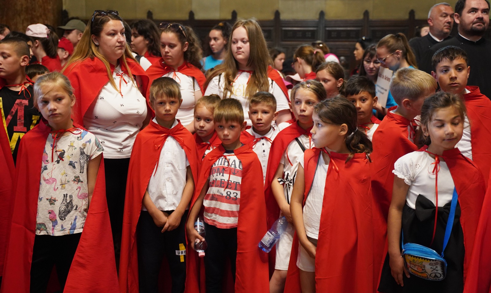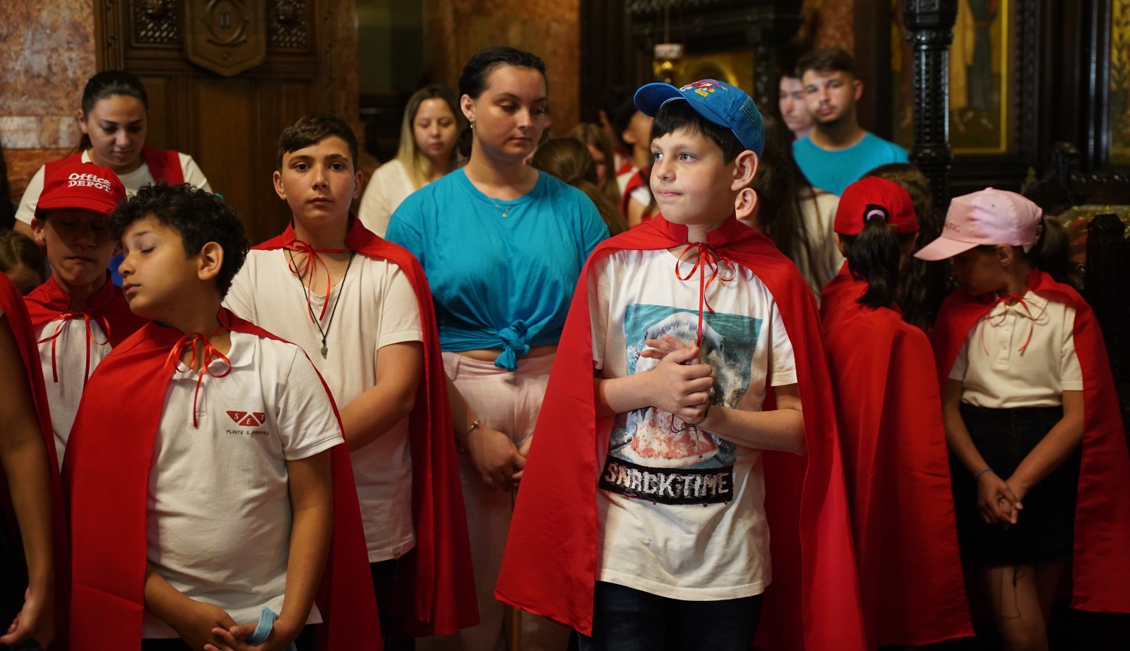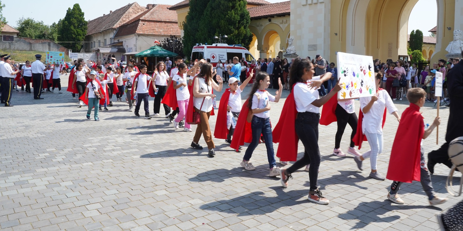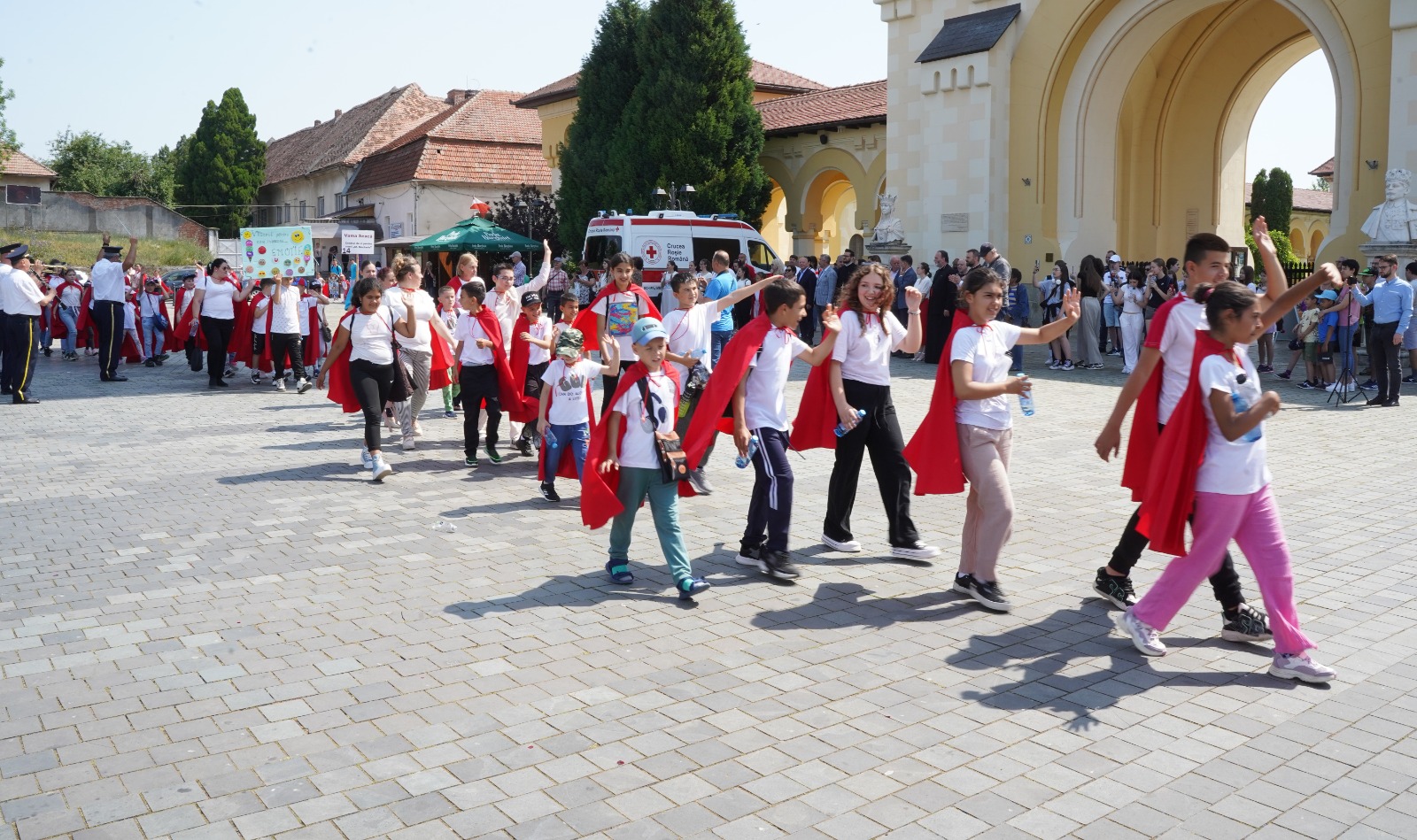 La ieșirea din Catedrală, participanții proveniți din întreaga Eparhie au realizat o poză de grup, pe treptele locașului de închinare. Apoi, pe acordurile muzicale ale fanfarei Centrului de Cultură „Augustin Bena” Alba, cei peste 700 de tineri și copii au defilat, urmând traseul: Piața Tricolorului – Strada Mihai Viteazul (aleea pietonală din vecinătatea laturii de sud a ansamblului Catedralei Reîntregirii) – Piața Cetății. În cadrul evenimentelor, copiii au purtat cămăși/bluze albe, după care au primit pelerine roșii, creând astfel un spectacol vizual plin de emoție și culoare. Fiecare grup participant a purtat pe parcursul traseului un banner personalizat, cu mesajul „Viitorul pentru mine înseamnă...”, completat anterior de copii cu gânduri și dorințe pline de speranță.