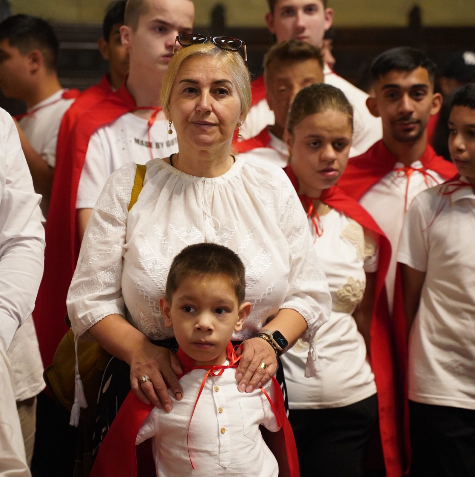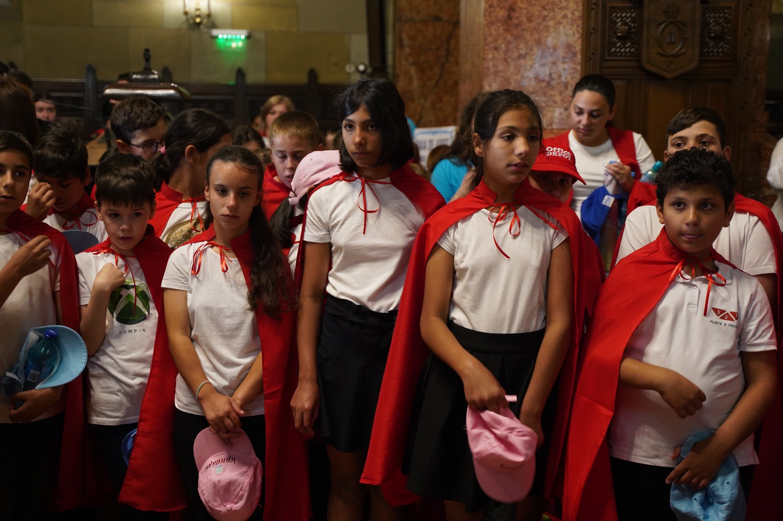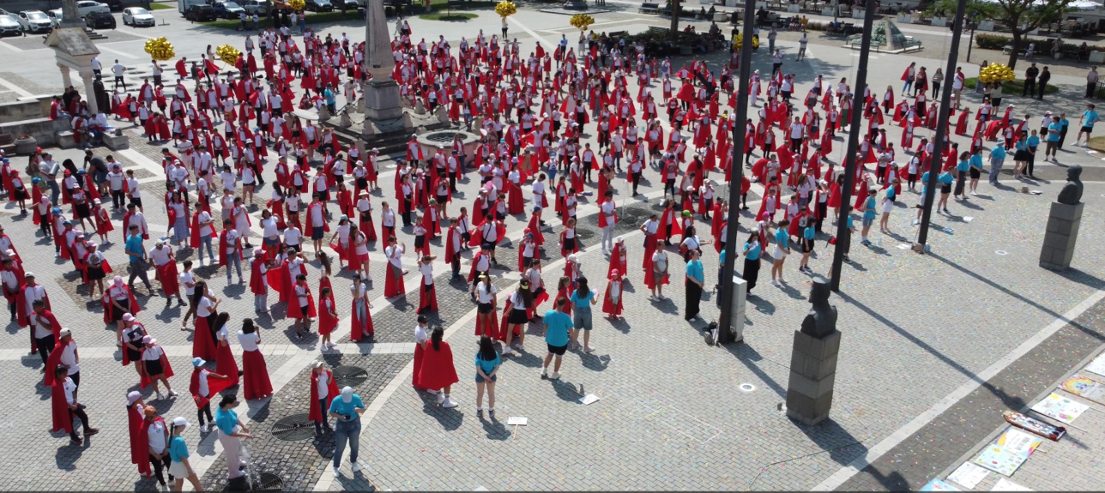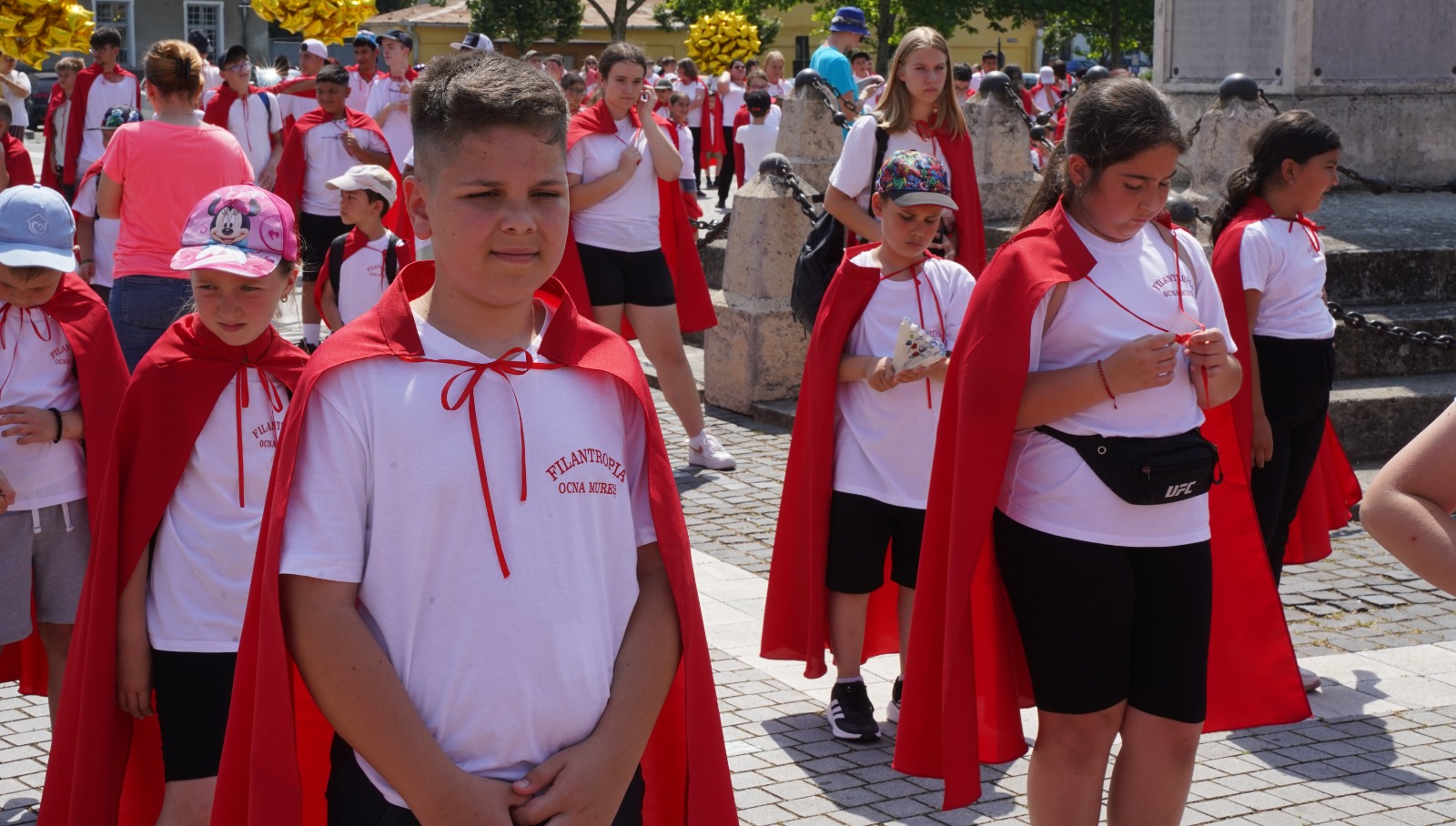 La ieșirea din Catedrală, participanții proveniți din întreaga Eparhie au realizat o poză de grup, pe treptele locașului de închinare. Apoi, pe acordurile muzicale ale fanfarei Centrului de Cultură „Augustin Bena” Alba, cei peste 700 de tineri și copii au defilat, urmând traseul: Piața Tricolorului – Strada Mihai Viteazul (aleea pietonală din vecinătatea laturii de sud a ansamblului Catedralei Reîntregirii) – Piața Cetății. În cadrul evenimentelor, copiii au purtat cămăși/bluze albe, după care au primit pelerine roșii, creând astfel un spectacol vizual plin de emoție și culoare. Fiecare grup participant a purtat pe parcursul traseului un banner personalizat, cu mesajul „Viitorul pentru mine înseamnă...”, completat anterior de copii cu gânduri și dorințe pline de speranță.