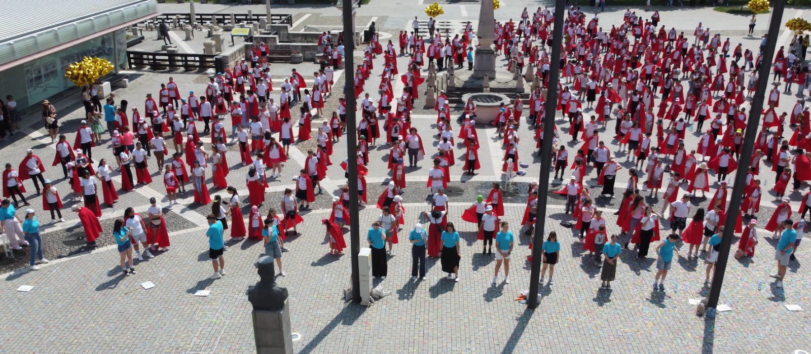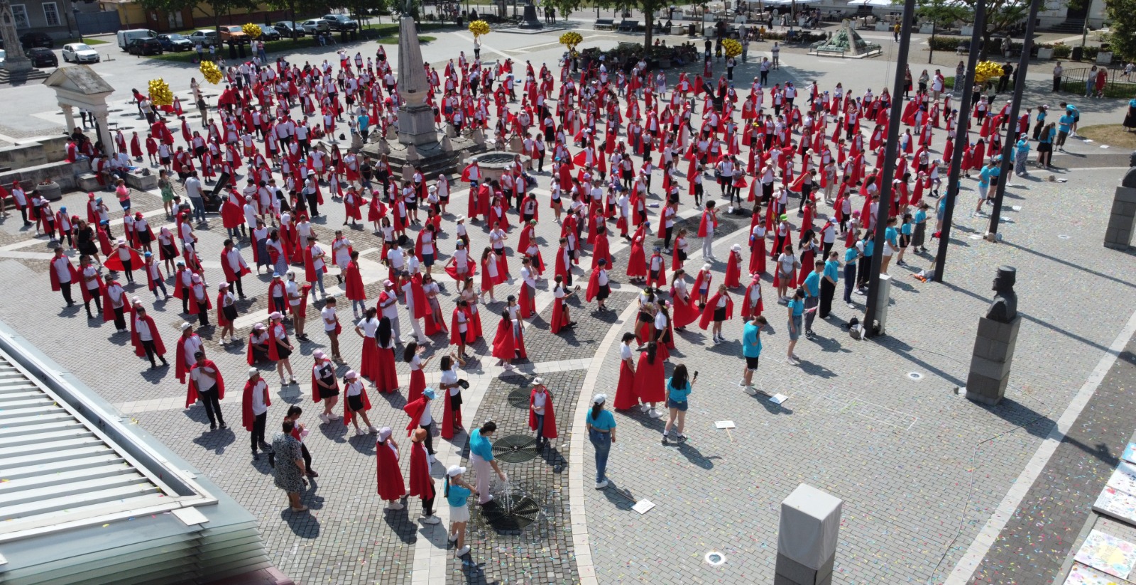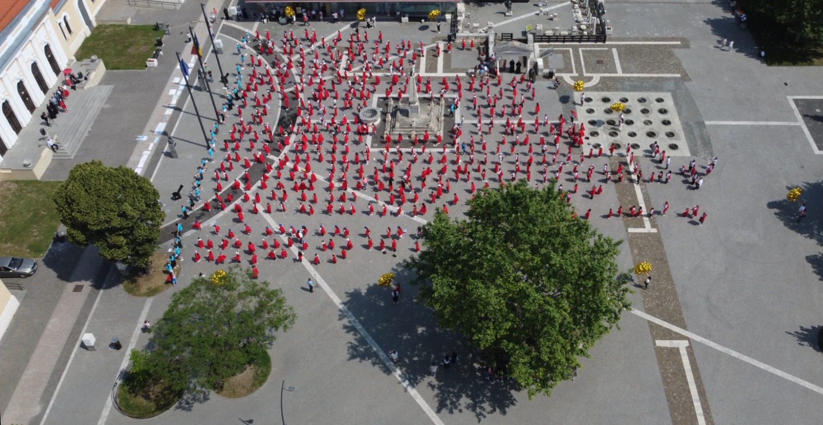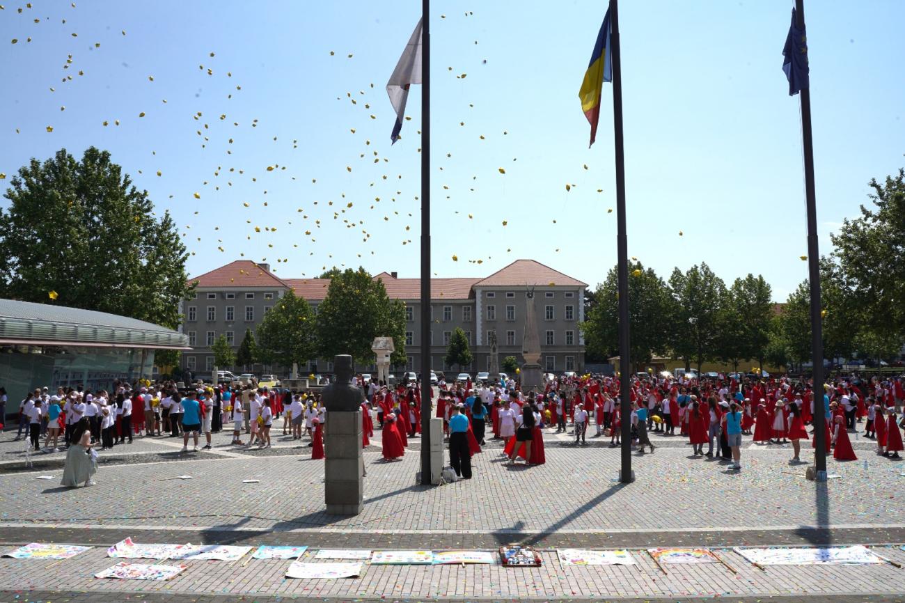 Ajunși în Piața Cetății, tinerii au participat la un program artistic deosebit și la flashmobul Copilăriei, activități acompaniate de piese muzicale și momente de confeti. În acest fel, copiii din centrele sociale gestionate de Asociația Filantropia Ortodoxă Alba Iulia au creat un cadru cu totul special, specific unei sărbători a copilăriei. În încheiere, cei peste 700 de copii și tineri au înălțat spre cer baloanele de culoare aurie, pe care le-au purtat în mâini la finalul evenimentului, în semn de bucurie și speranță, dar și de mulțumire și recunoștință față de Dumnezeu pentru binefacerile revărsate asupra lor. Programul artistic a fost moderat de către Giorgiana Maria Șuluțiu, asistent social în cadrul Asociației Filantropia Ortodoxă Alba Iulia.