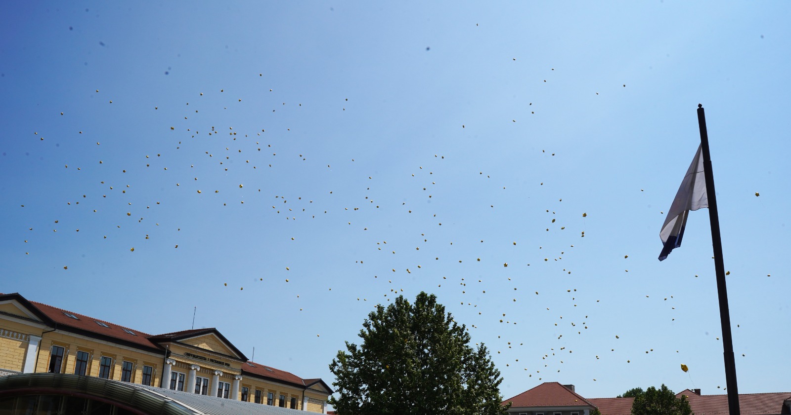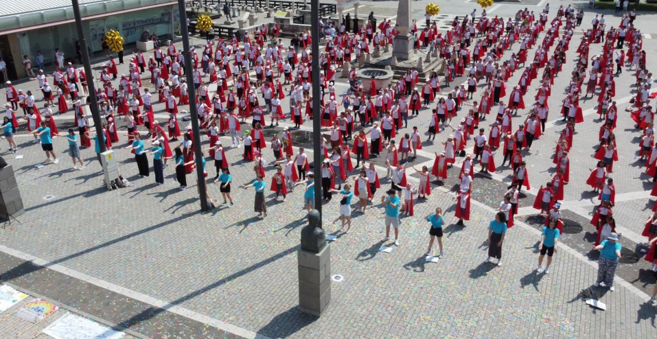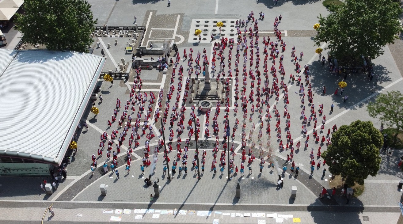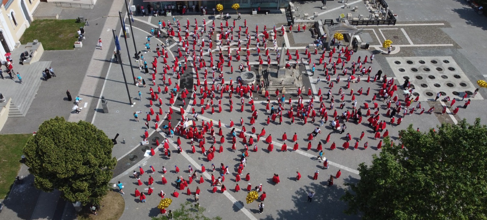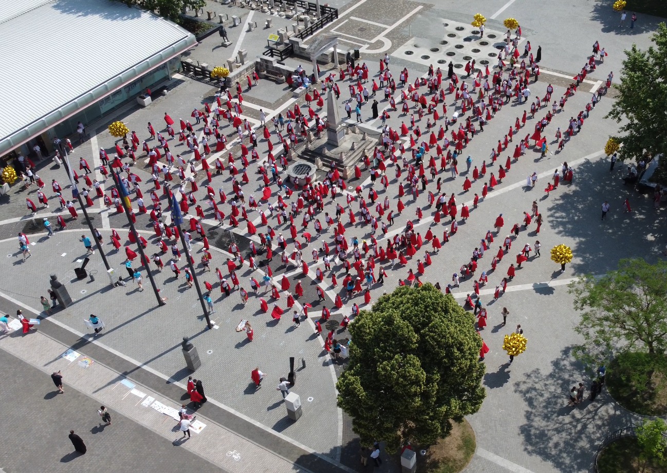 Ajunși în Piața Cetății, tinerii au participat la un program artistic deosebit și la flashmobul Copilăriei, activități acompaniate de piese muzicale și momente de confeti. În acest fel, copiii din centrele sociale gestionate de Asociația Filantropia Ortodoxă Alba Iulia au creat un cadru cu totul special, specific unei sărbători a copilăriei. În încheiere, cei peste 700 de copii și tineri au înălțat spre cer baloanele de culoare aurie, pe care le-au purtat în mâini la finalul evenimentului, în semn de bucurie și speranță, dar și de mulțumire și recunoștință față de Dumnezeu pentru binefacerile revărsate asupra lor. Programul artistic a fost moderat de către Giorgiana Maria Șuluțiu, asistent social în cadrul Asociației Filantropia Ortodoxă Alba Iulia.