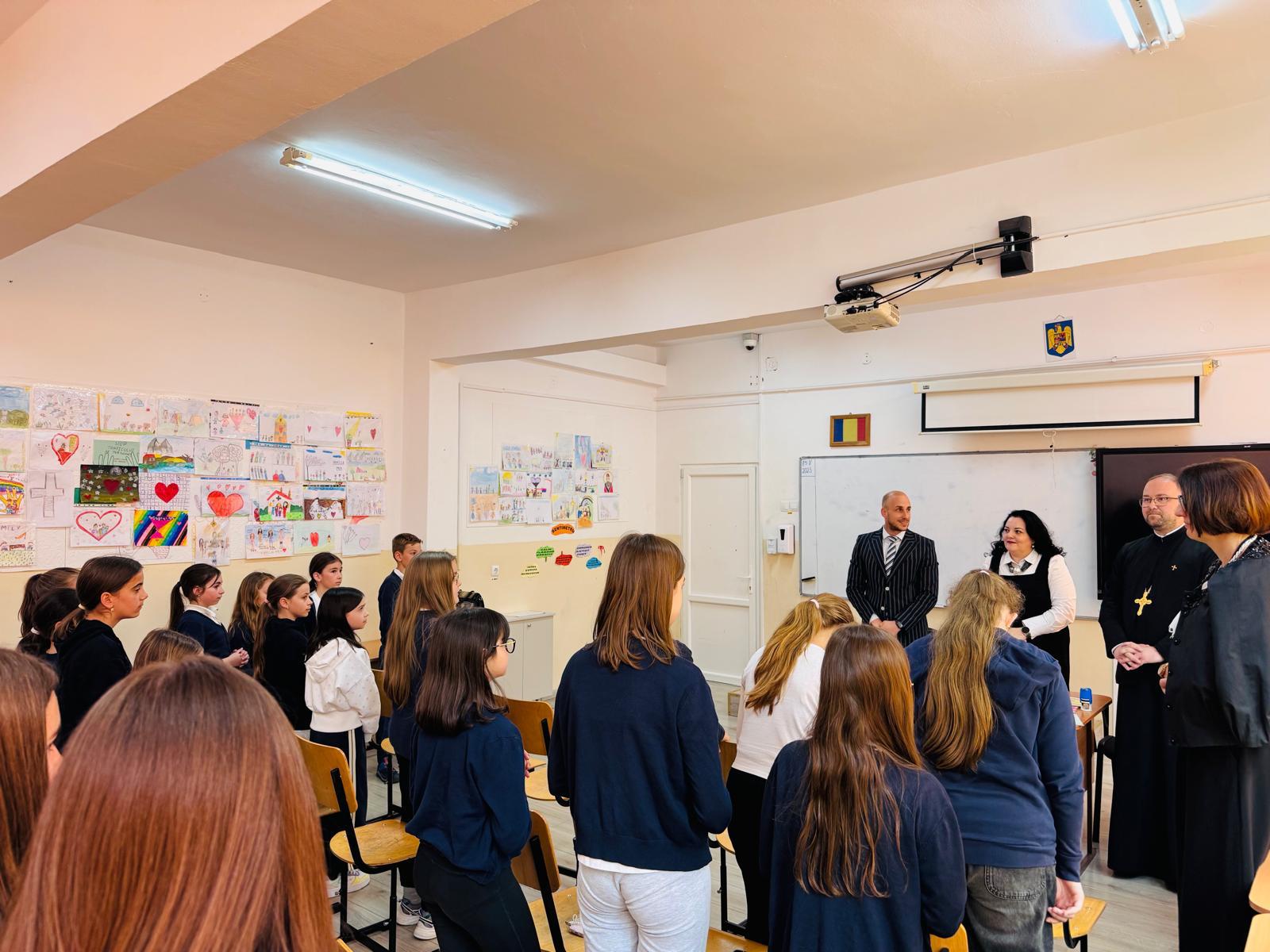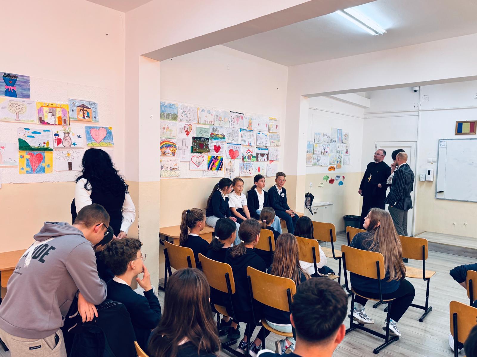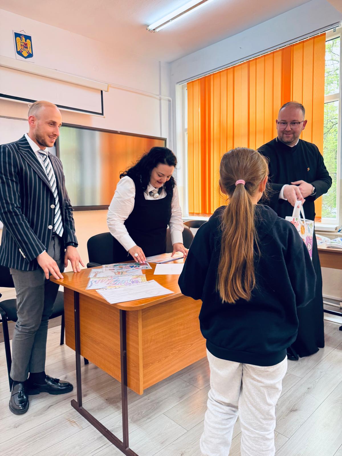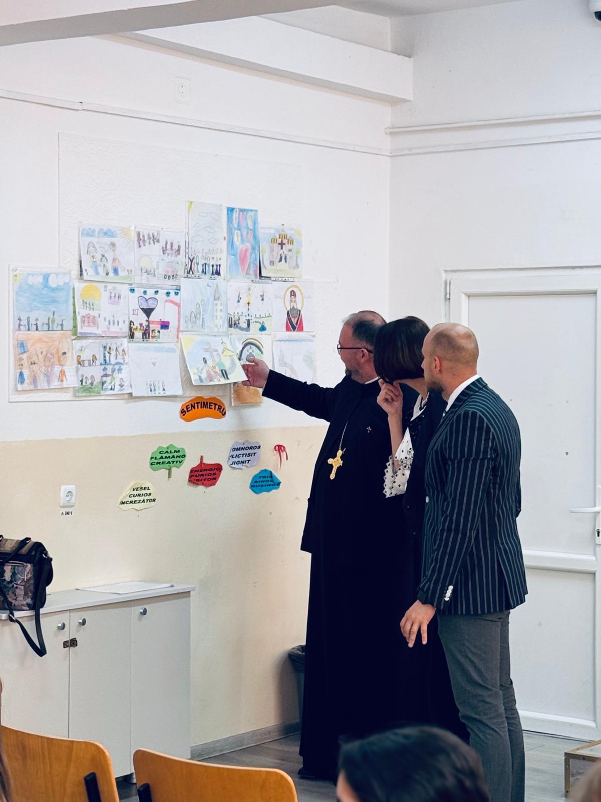 Un sprijin deosebit a fost oferit și de părintele protopop Iacob-Răzvan Șulea, care a transmis un cuvânt emoționant despre rolul familiei ca „biserica de acasă” și despre modul în care credința, arta și educația pot lucra împreună în formarea tinerelor generații. Domnia sa a concluzionat: „Astăzi, prin culorile copiilor, vedem nu doar case, ci adevăratele biserici ale inimii, unde Dumnezeu este prezent prin dragostea celor ce se dăruiesc unii altora. Aceste lucări nu sunt simple desene sau picturi – sunt rugăciuni pictate ale inocenței și ale credinței”. Prezența sfinției sale a adus un plus de spiritualitate și solemnitate evenimentului, iar implicarea directă a fost o dovadă a colaborării fructuoase dintre Școală și Biserică.