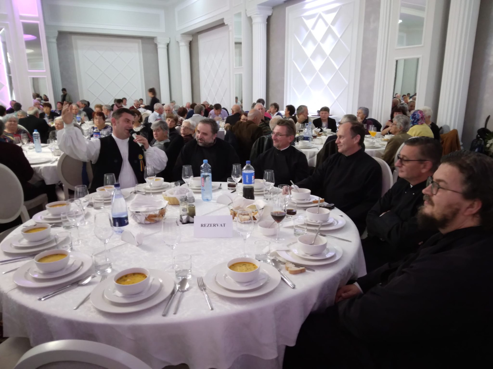 Peste 500 de persoane vârstnice, însoțite de preoții parohi din cele zece parohii ale municipiului Târnăveni, au fost sărbătorite într-un cadru festiv. Astfel, au fost prezente și persoane asistate la domiciliu, prin serviciul de asistență socială al protopopiatului. Cu acest prilej, părintele protopop Sergiu Dumitru a adresat un cuvânt de suflet participanților, subliniind faptul că în Biserica Ortodoxă nu există oameni „în vârstă”, ci doar „tineri de diferite vârste”. Bucuria de a participa la o masă festivă, de a socializa și de a fi în comuniune unii cu ceilalți a fost amplificată de momentul artistic susținut de către interpretul de muzică populară Ciprian Istrate și Ansamblul de dansuri populare „Junii Târnavei”.