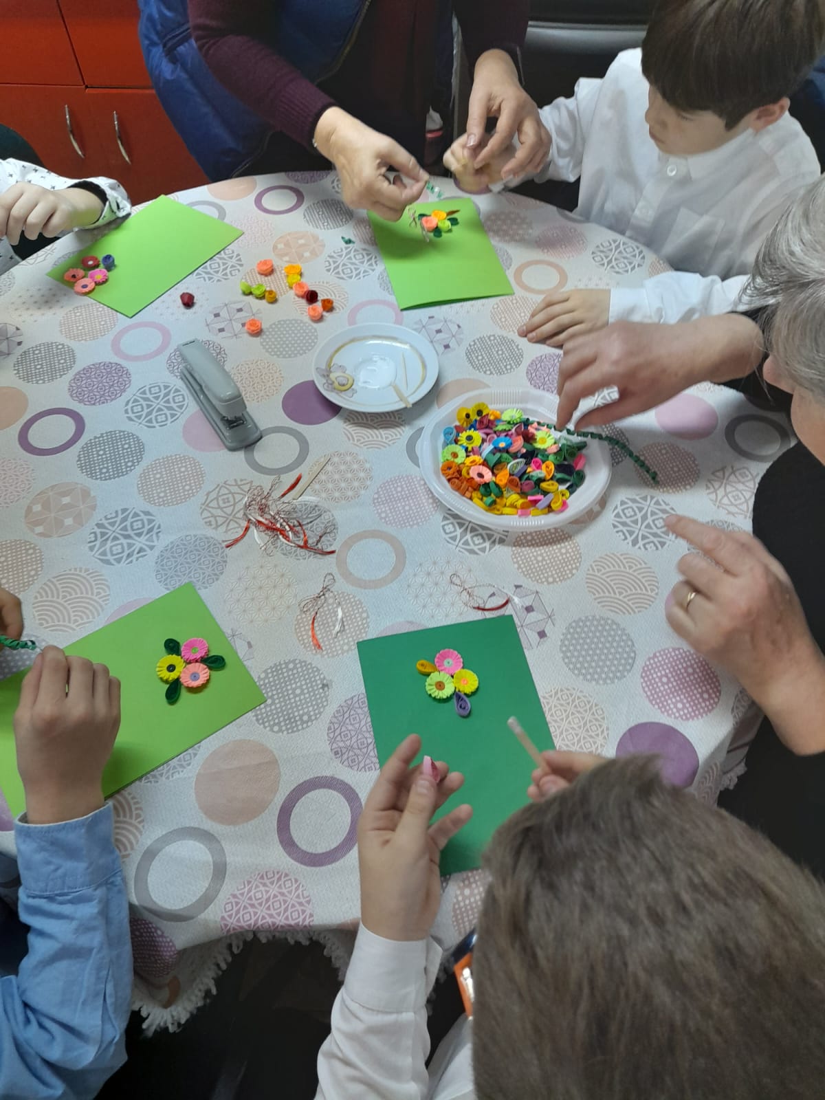 Marţi, 7 martie a.c., la Centrul de zi pentru persoane adulte cu dizabilități „Sfântul Meletie” din Alba Iulia, a fost serbată cu anticipaţie Ziua Internaţională a Femeii. În sensul acesta, la sediul Centrului social au fost prezenţi copiii din clasa a II-a A de la Şcoala Gimnazială „Ovidiu Hulea” Aiud, care au adus bucurie în sufletele doamnelor beneficiare. Astfel, de Ziua Mamei, copilașii au susținut un scurt moment artistic constând în poezii și cântece dedicate celei mai dragi ființe, după care a avut loc un atelier de creație în care elevii au realizat felicitări în tehnica quilling, pe care le vor dărui mamelor. Totodată, cu prilejul acestei zile însemnate de început al primăverii, cei mici le-au oferit doamnelor daruri simbolice.