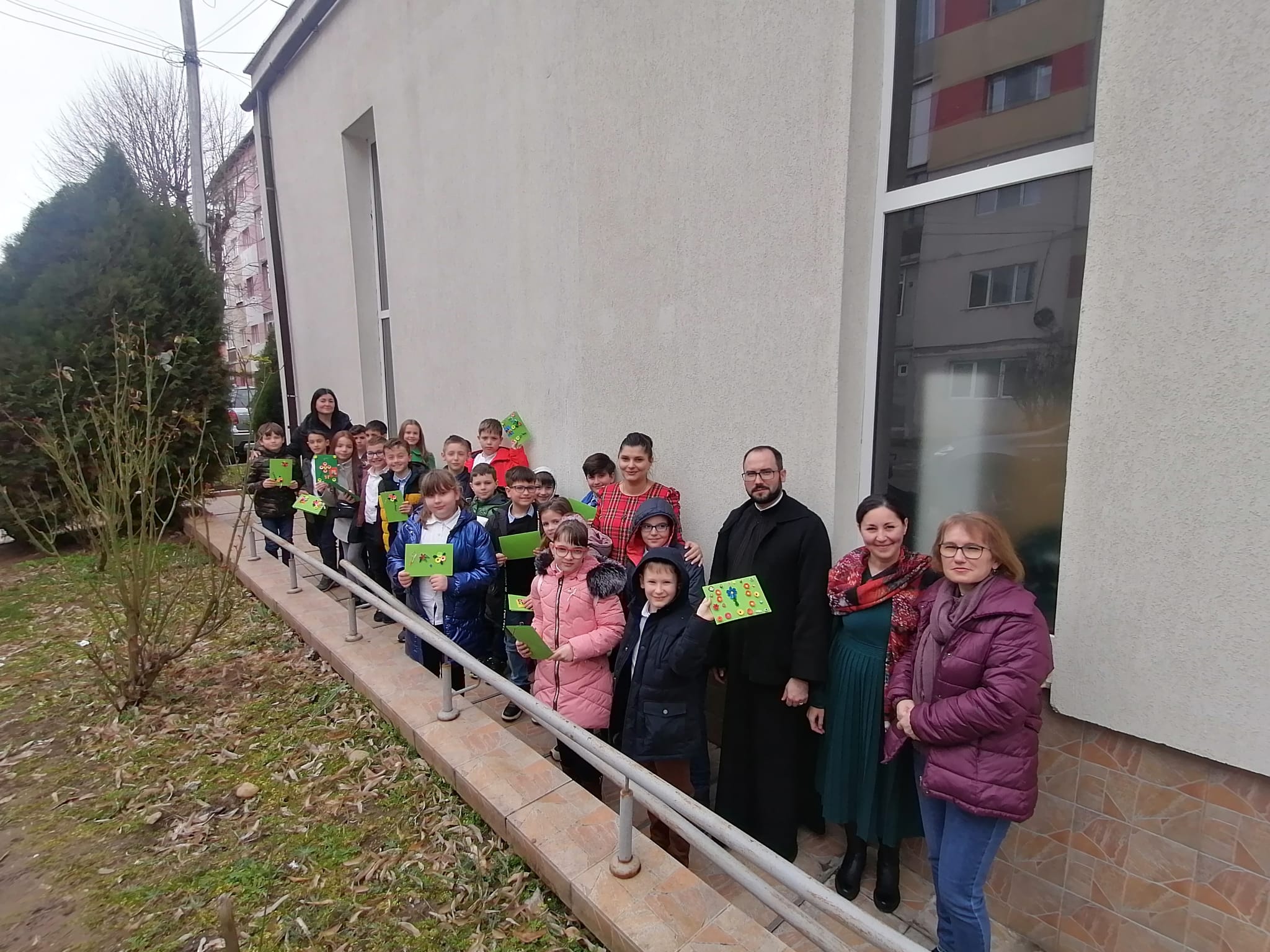 Această acțiune urmează celei de săptămâna precedentă, în care aceiași elevi, în colaborare cu beneficiarii Centrului „Sfântul Meletie” din Alba Iulia, au dăruit mărțișoare hand made doamnelor din Parohia Ortodoxă Aiud III, păstorită de către părintele Nicolae Aloman, inspector de editură și tipărituri în cadrul Eparhiei Alba Iuliei. Activitățile fac parte din proiectul „Două inimi care bat sincron pentru Dumnezeu: elanul și candoarea copilăriei pandant cu blândețea și cumpătul bătrâneții”, elaborat de către cele trei instituții partenere: Biserică, Școală și Centru social, încadrându-se în tematica Anului omagial al pastorației persoanelor vârstnice.