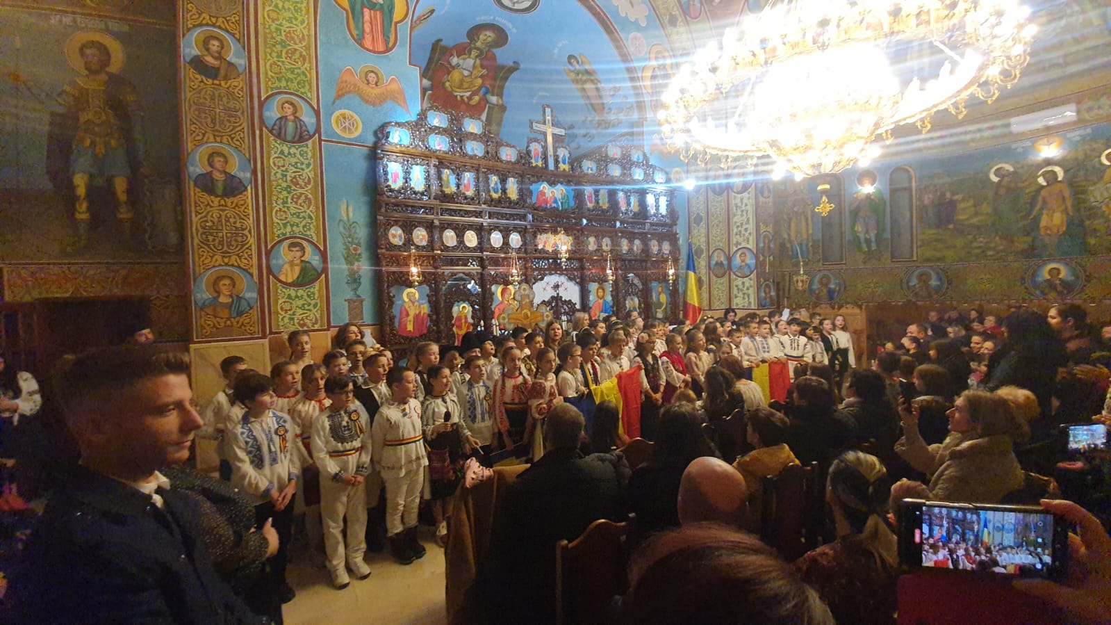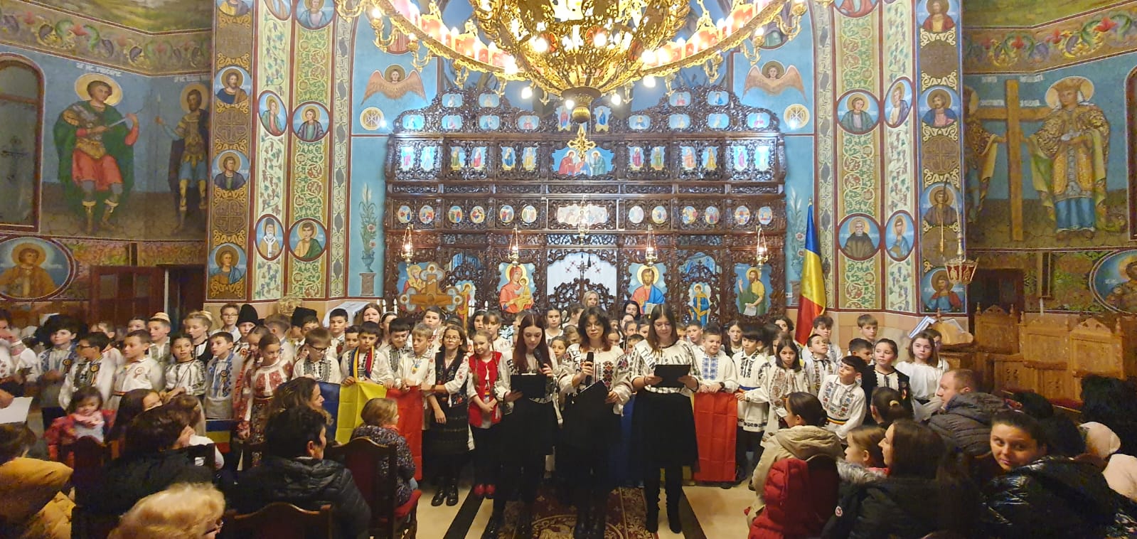 Joi, 28 noiembrie a.c., aproximativ 150 de elevi târgumureșeni au celebrat Ziua Națională a României în cadrul unui moment cultural-artistic de excepție. Intitulat sugestiv „Unire-n suflet de copil”, evenimentul, găzduit de biserica „Adormirea Maicii Domnului” din Târgu Mureș, a debutat și s-a încheiat cu rugăciuni înalțate către Tatăl Ceresc, aducându-I mulțumire, slavă, dar și fierbinți rugăminți de a nu-și întoarce fața de la poporul nostru dreptcredincios, de la noi și de la toți cei dragi ai noștri.