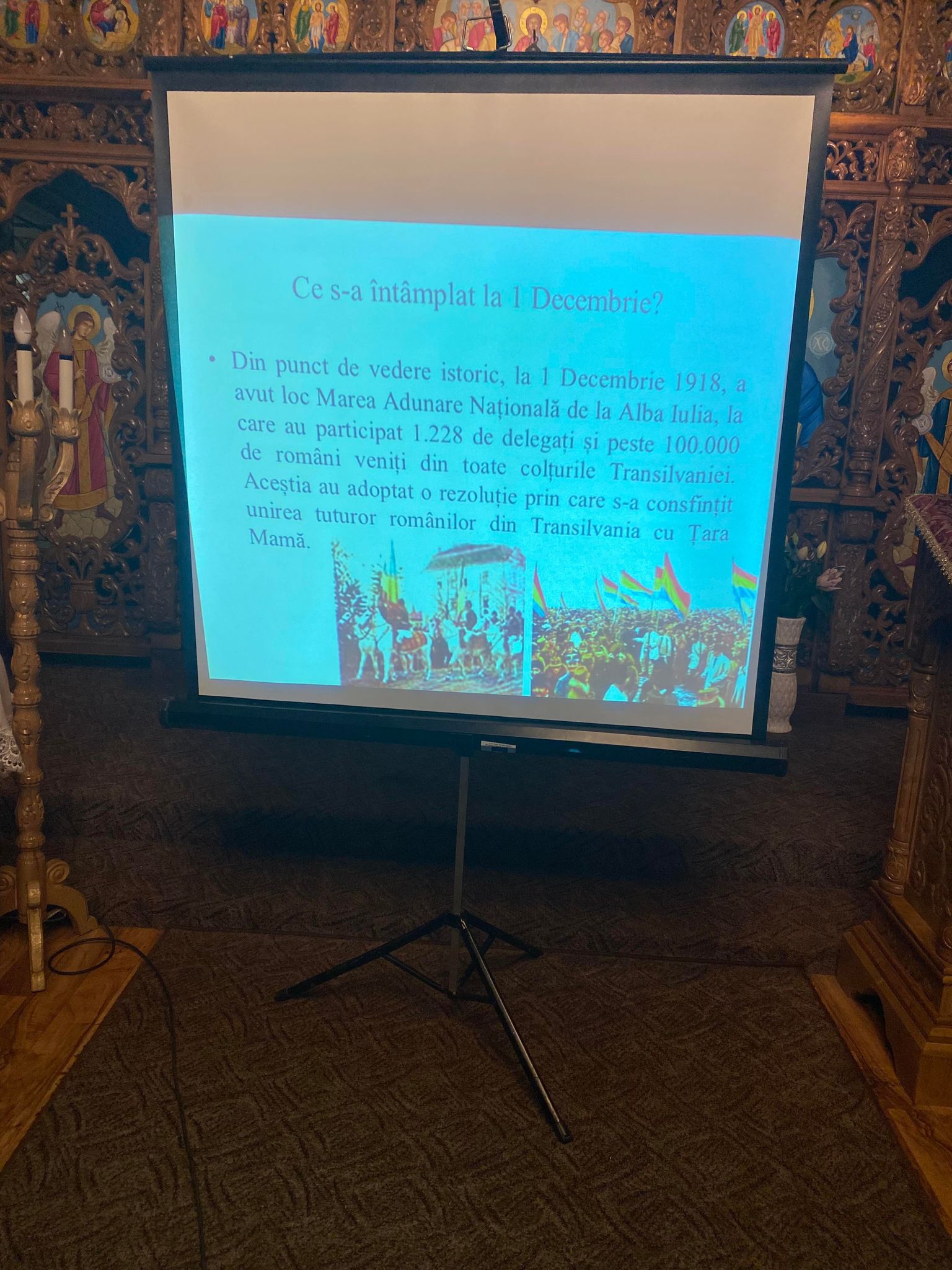 Astfel, în biserica „Adormirea Maicii Domnului”, ceremoniile de omagiere a Zilei Naționale a României au debutat în zorii zilei de 1 decembrie, când un număr important de seniori au participat la Sfânta Liturghie, luând parte la „Marele Ospăț” pregătit de Însuși Mirele Vieții, Mântuitorul Iisus Hristos, precum și la slujba de Te-Deum oficiată în cinstea eroilor neamului românesc, care au înfăptuit Marea Unire. Ulterior, a urmat un moment cultural-artistic de excepție, în cadrul căruia părintele Vasile Ilieș a adus în atenție semnificația și conținutul „Rezoluțiunii Adunării Naționale de la Alba Iulia din 1918”, iar prof. dr. Ciprian Fărcaș, de la Școala Gimnazială „Dacia” Târgu-Mureș, a evocat personalitățile care au făcut parte din Marea Adunare Națională de la 1918. La final, toți cei prezenți, preoți și credincioși, au intonat imne patriotice, „cântând” istoria neamului și rugându-L pe Bunul Dumnezeu să ocrotească țara aceasta și neamul românesc.