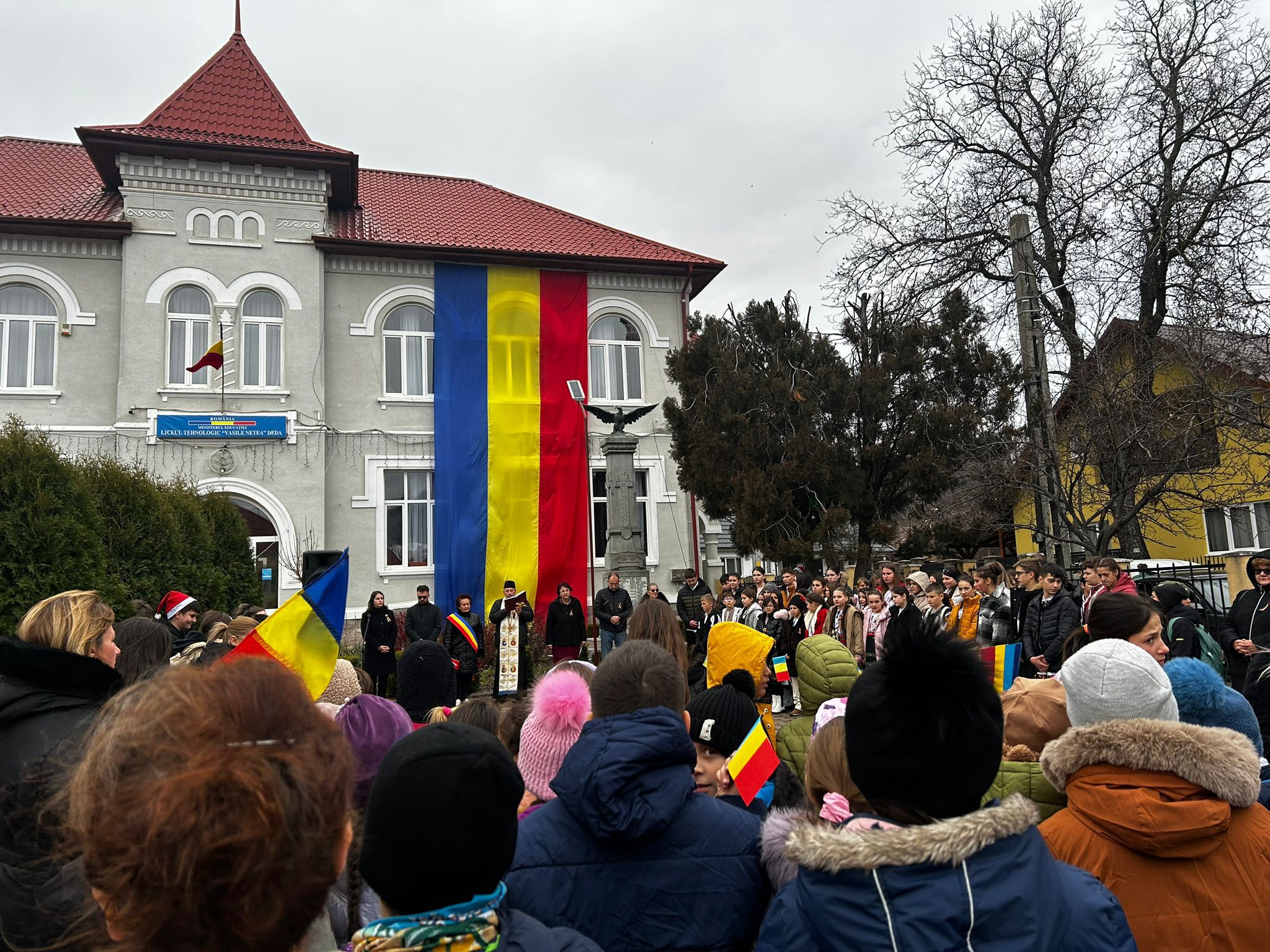 În data de 28 noiembrie 2024, elevii Liceului Tehnologic „Vasile Netea” din comuna Deda, județul Mureș, au sărbătorit cu anticipație Ziua Națională a României. Evenimentul aniversar și comemorativ a fost organizat de către conducerea instituției de învățământ, în colaborare cu Parohia Ortodoxă Deda și Primăria comunei Deda. Cu acest prilej deosebit, tinerii școlari au interpretat un buchet de cântece patriotice și au rostit mai multe poezii, subliniind importanța actului Marii Uniri pentru țara noastră.