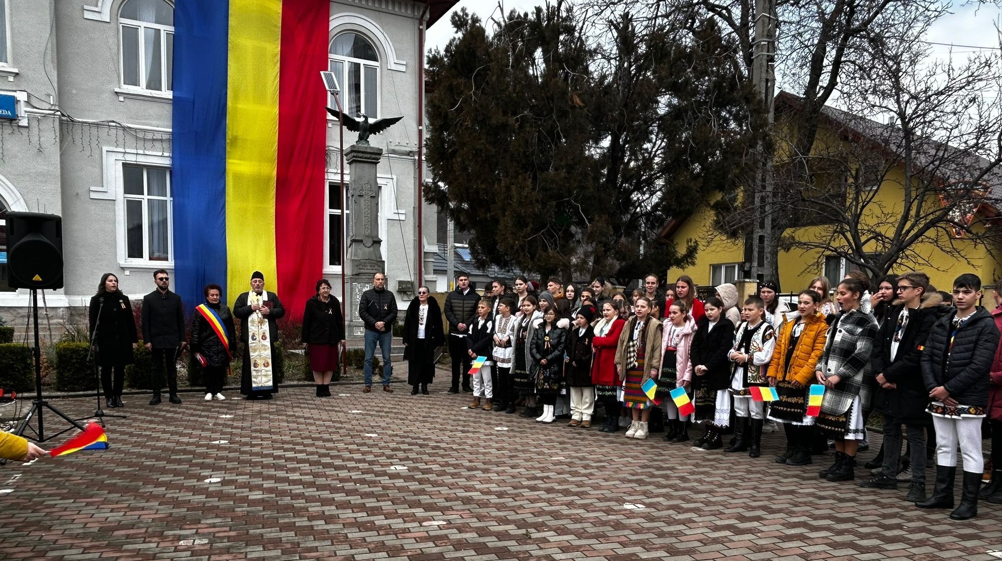 Momentul aniversar a debutat cu oficierea slujbei de Te-Deum, în curtea Liceului Tehnologic din localitate. La finalul serviciului religios, autoritățile locale prezente – Lucreția Cadar (primar), respectiv Vlad Buta (viceprimar) – au depus o coroană de flori la monumentul din proximitatea școlii, în memoria eroilor care și-au pierdut viața pentru libertatea și unitatea noastră. În continuare, cu multă dăruire și implicare, elevii au prezentat momentul artistic, pregătit cu minuțiozitate de cadrele didactice Paul Ilieș, Ana Elena Man, Claudia Cheia și Anca Moldovan.