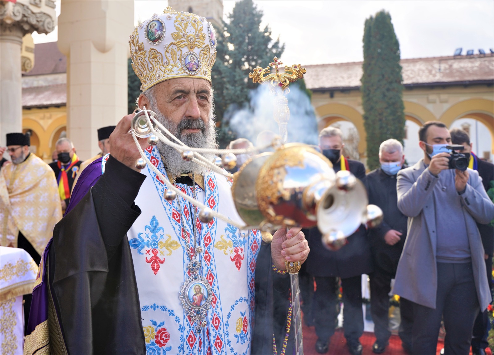 În continuare, de la ora 12.00, pe esplanada special amenajată în fața Catedralei arhiepiscopale, Înaltpreasfințitul Părinte Irineu a săvârșit slujba de Te-Deum, cu prilejul împlinirii a 103 de ani de la făurirea României Mari. Ceremonia a fost oficiată în prezența a mii de credincioși veniți din toate colțurile țării, dar și din afara granițelor, alături de care s-au aflat numeroase oficialități centrale și locale. La finalul slujbei de Te-Deum, celebrată în semn de mulțumire adusă lui Dumnezeu pentru toate binefacerile revărsate asupra poporului nostru de-a lungul timpului, Ierarhul nostru a adresat un vibrant cuvânt celor prezenți, în care a reliefat însemnătatea istorică a mărețului eveniment de la 1 decembrie 1918. Apoi, în încheierea evenimentului, au fost intonate un colind și trei cântece patriotice de către grupul de clerici care au oferit răspunsurile liturgice.