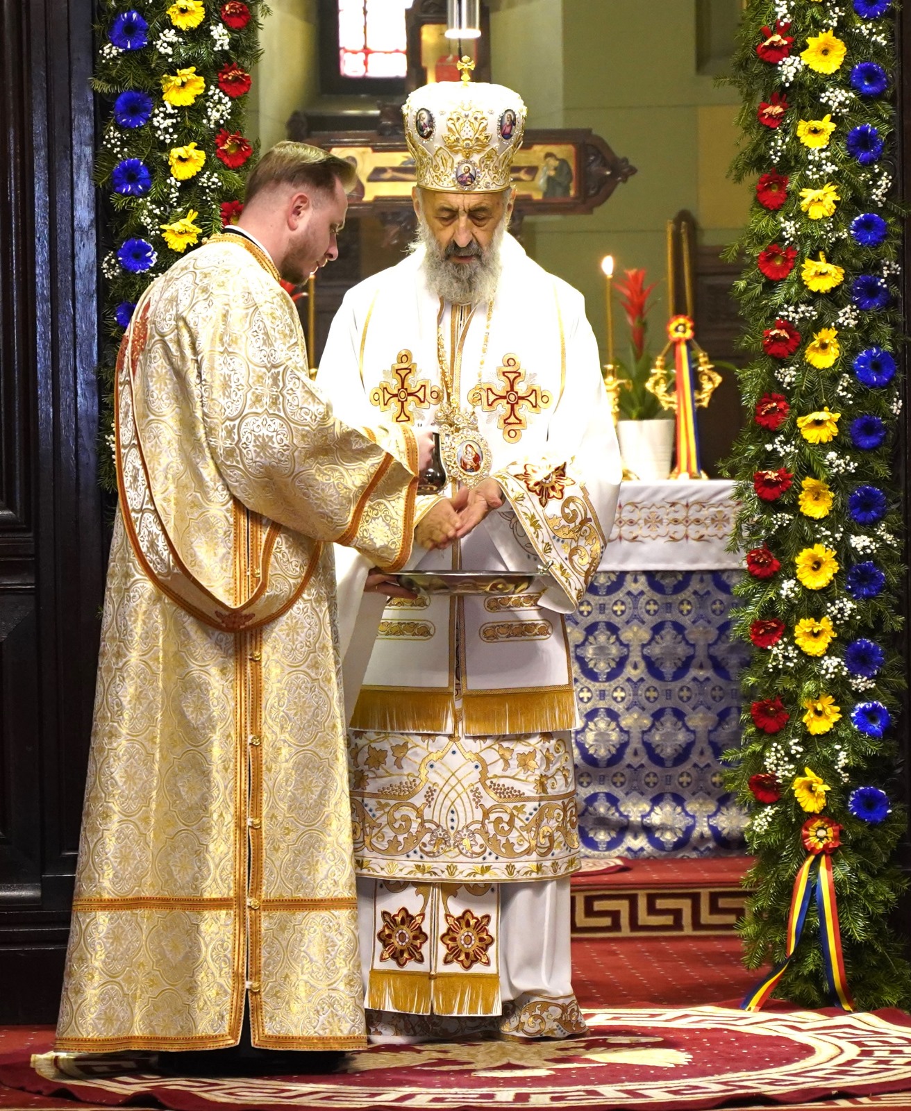 Vineri, 1 decembrie a.c., Ziua Națională a României a fost sărbătorită în mod solemn la Alba Iulia, cu ocazia împlinirii a 105 ani de la Marea Adunare Națională care a consfințit Unirea Transilvaniei, Banatului, Crișanei și Maramureșului cu Regatul Român. În această zi cu totul deosebită pentru poporul nostru, Înaltpreasfințitul Părinte Irineu, Arhiepiscop al Alba Iuliei, a fost prezent la Catedrala Reîntregirii din Cetatea Marii Uniri. Începând cu ora 8.45, Întâistătătorul Eparhiei noastre, înconjurat de un sobor de preoți și diaconi, a oficiat Dumnezeiasca Liturghie a Sfântului Ioan Gură de Aur. Răspunsurile liturgice au fost oferite de către Grupul coral „Cantores Domini” al Eparhiei Alba Iuliei.